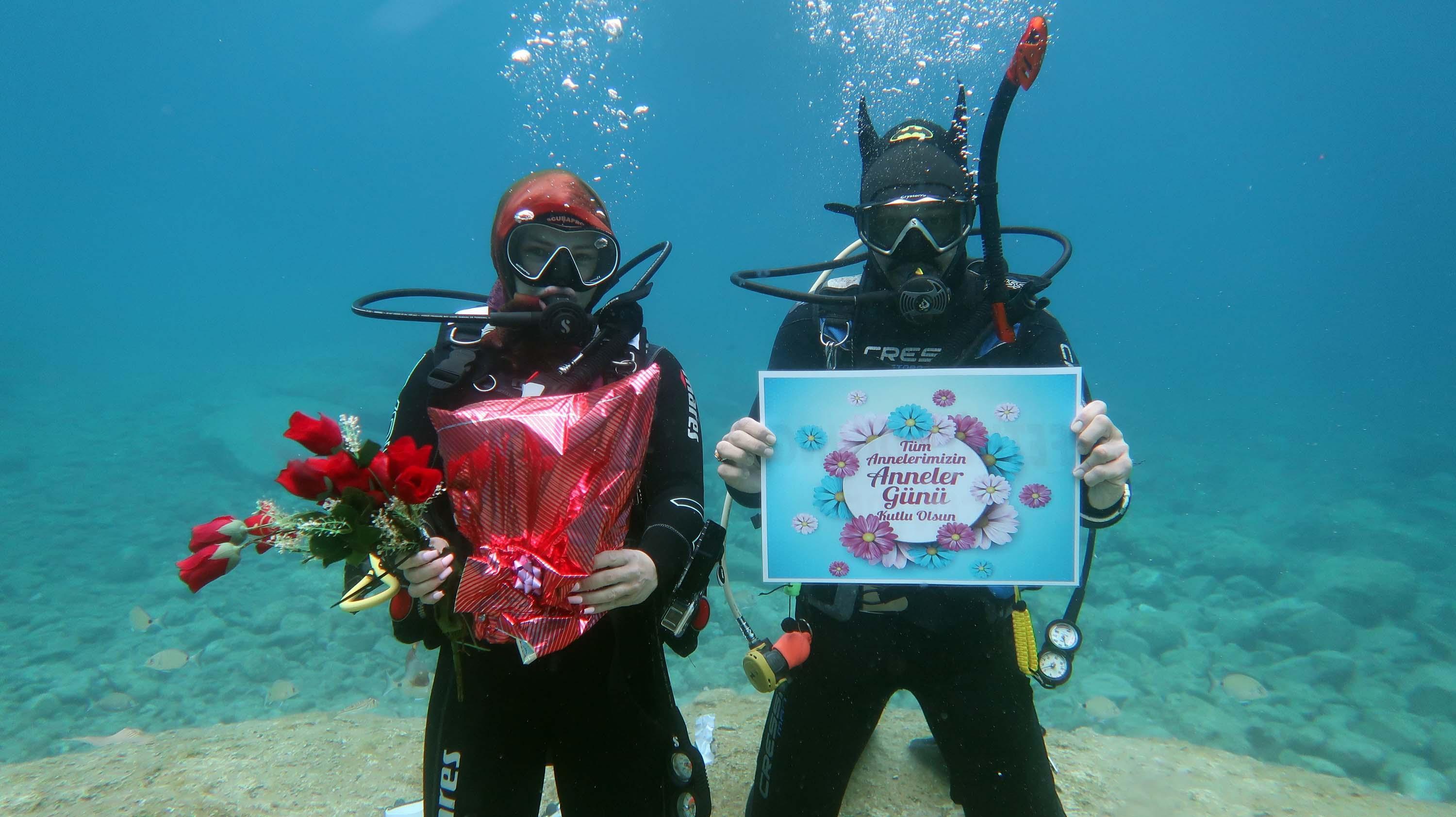 Fethiye'de dalgıçlardan 5 metre derinlikte 'Anneler Günü' mesajı