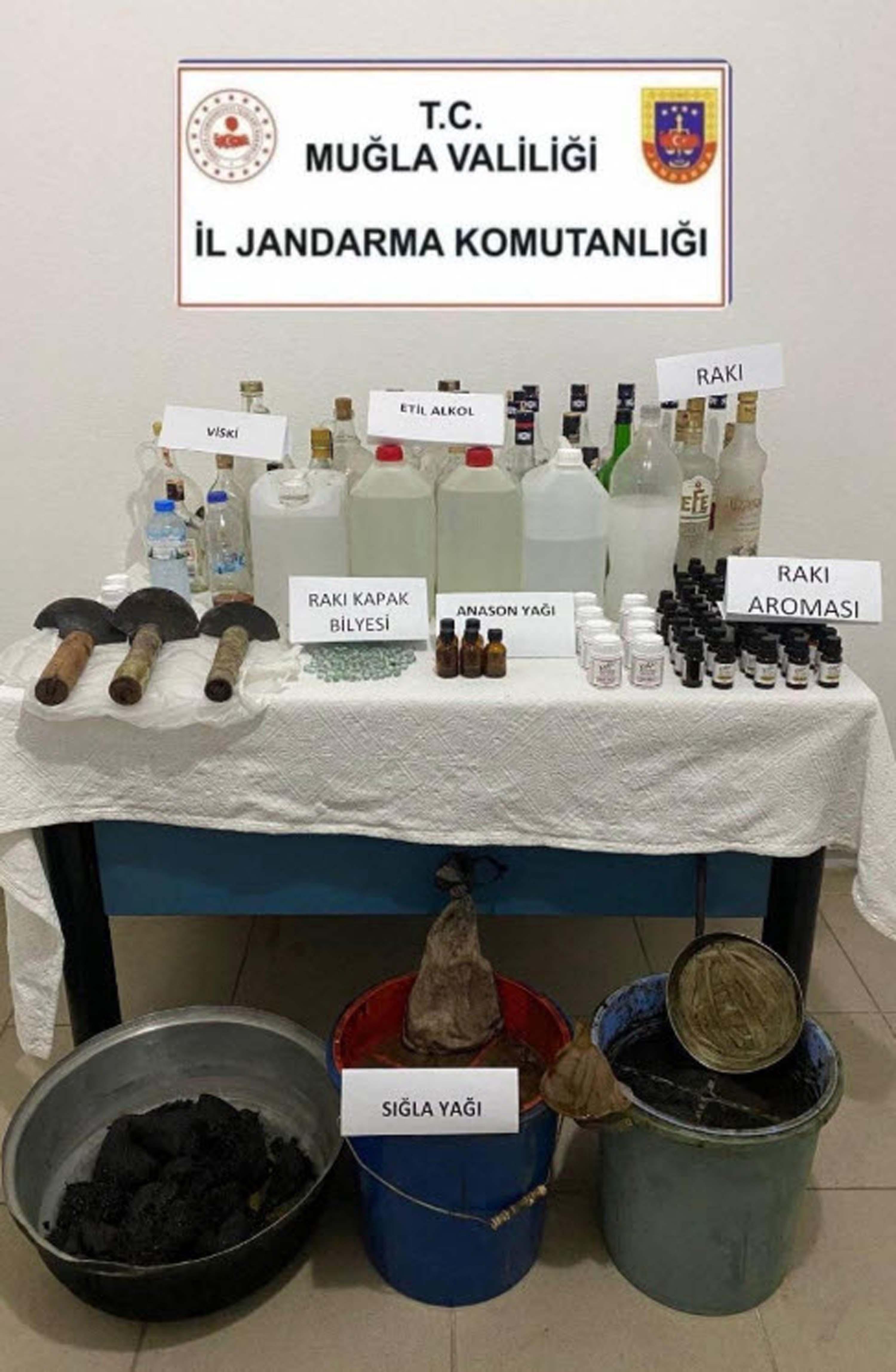 Köyceğiz İlçe Jandarma Komutanlığı ekipleri, Beyobası Mahallesi'nde yaşayan A.K., B.H. ve İ.B.'nin evlerinde sahte içki olduğu ve yılbaşında piyasaya sürecekleri bilgisine ulaştı. Cumhuriyet Başsavcılığı koordinesinde şüphelilerin evlerine bugün düzenlenen operasyonda 21 litre sahte içki, 15 litre etil alkol, 20 litre sığla yağı, 64 anason aroması, 200 rakı kapağı bilyesi, 28 alkol şişesi ele geçirildi.