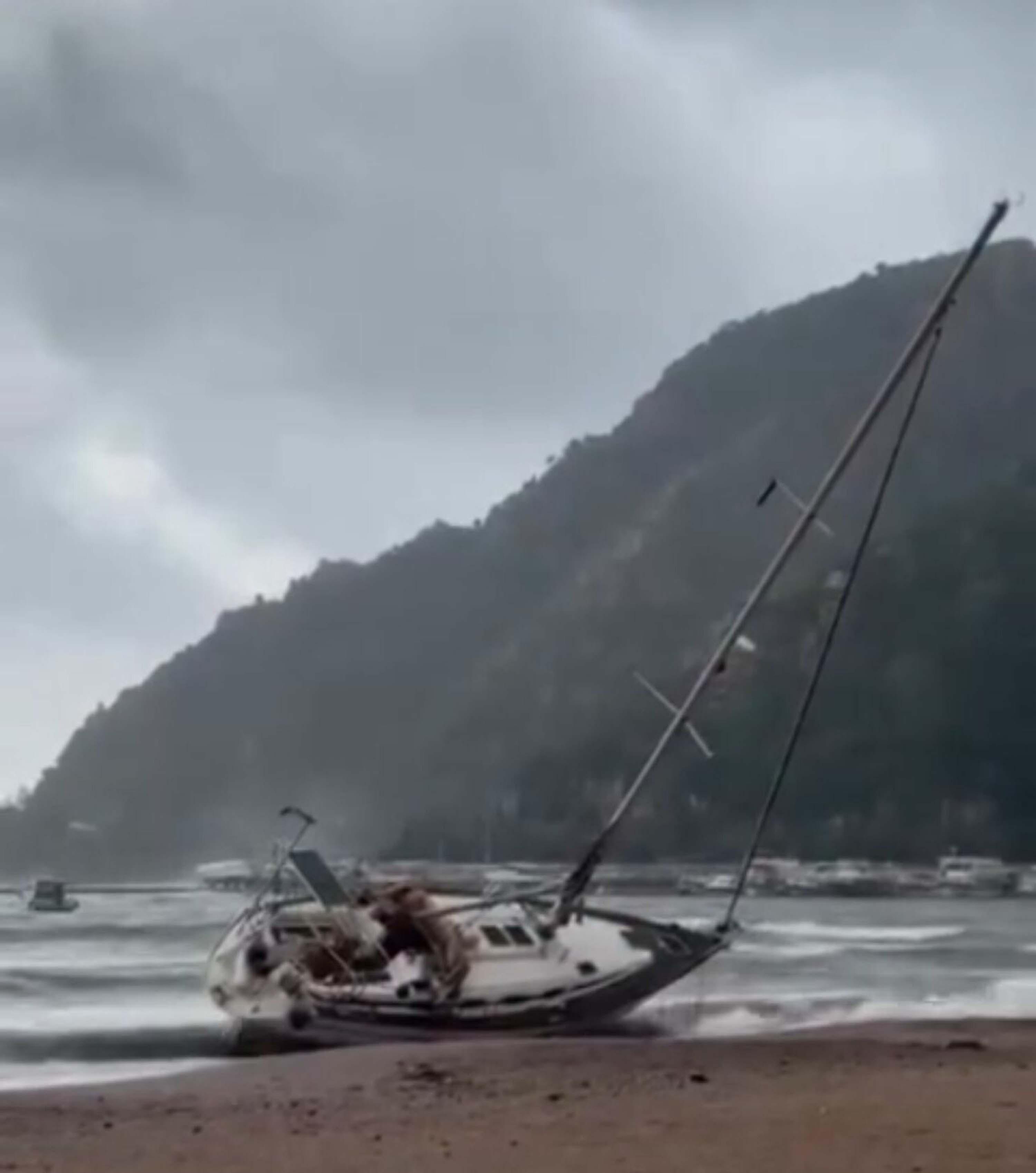Marmaris’te fırtına; ağaçlar devrildi, yelkenli tekne karaya oturdu