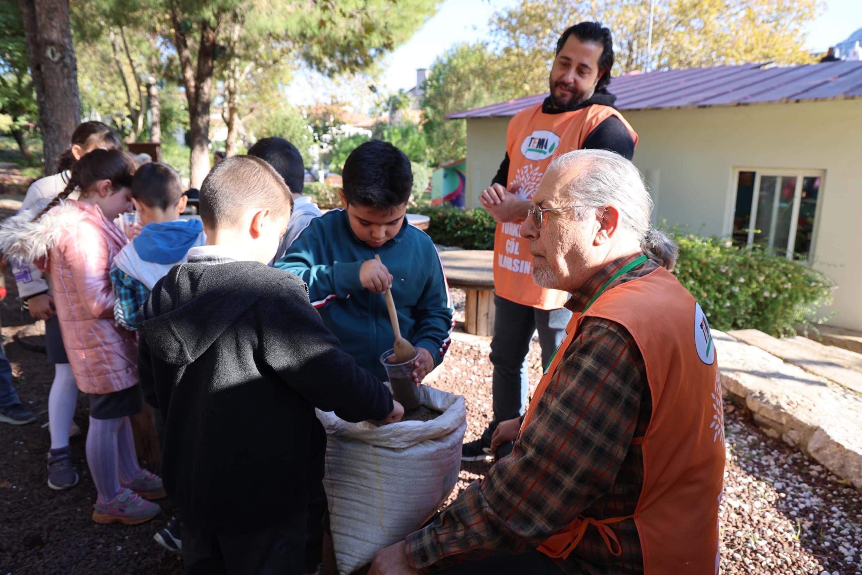 90 öğrencinin katıldığı etkinlik kapsamında film gösterimi yapıldı ve çocuklarla birlikte meşe palamutları toprakla buluşmak üzere çimlendirmek üzere hazırlandı. TEMA Eğitim Birimi'nde gönüllü olarak çalışan Prof. Dr. Gelengül Haktanır ve Prof. Dr. Koray Haktanır çocuklara toprak hakkında bilgiler verdi. Eğitim sonunda meşe palamutlarını çimlendirme yöntemiyle hazırlayan çocuklar, ilerleyen günlerde palamutları toprakla buluşturmak üzere tekrar bir araya gelecek.(DHA)