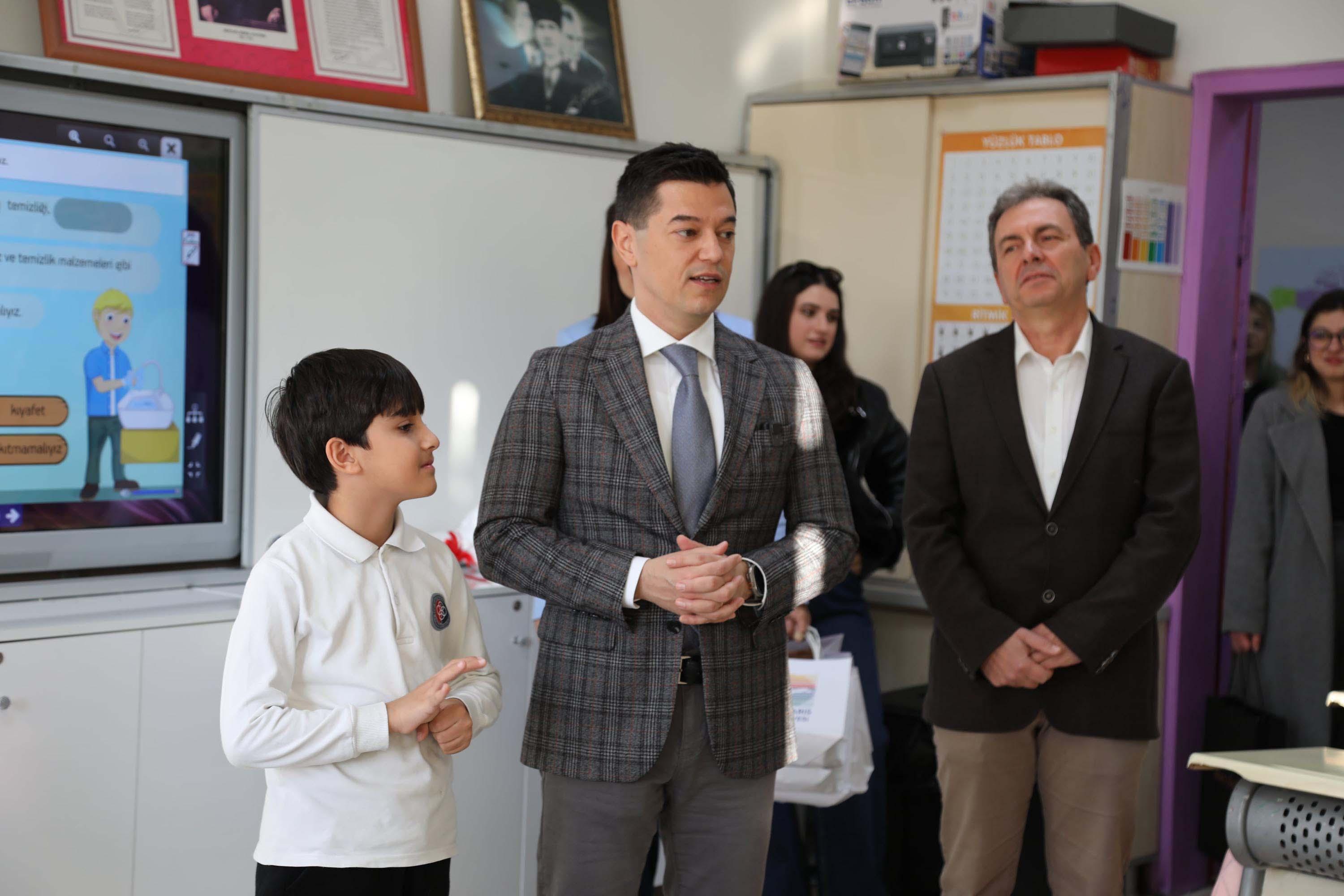 Şehit Ahmet Benler İlkokulu 3. sınıf öğrencisi Yunus Emre Balıkçı, sınıf başkanlığı seçiminde 'Belediye Başkanını getireceğim' diyerek vaatlerde bulundu. Seçimi kazanan Yunus Emre, Marmaris Belediye Başkanı Acar Ünlü'yü okullarına davet etti. Minik öğrencinin isteğini kırmayan Başkan Ünlü, okulu ziyaret ederek Yunus Emre’nin sınıfına konuk oldu. Ünlü, sınıf başkanı seçilen Yunus Emre’yi tebrik etti. Öğrencilerle sohbet ederek başarı dileklerini ileten Başkan Ünlü, teneffüs sırasında çocuklara süt ve simit ikramında bulundu. Ünlü, “Hepinizin gelecekte çok iyi yerlere geleceğine inanıyorum. Güzel bir gelecek için çok çalışmaktan, mücadele etmekten ve hayallerinizin peşinden koşmaktan asla vazgeçmeyin. Her zaman sizin yanınızdayız” dedi.(DHA)