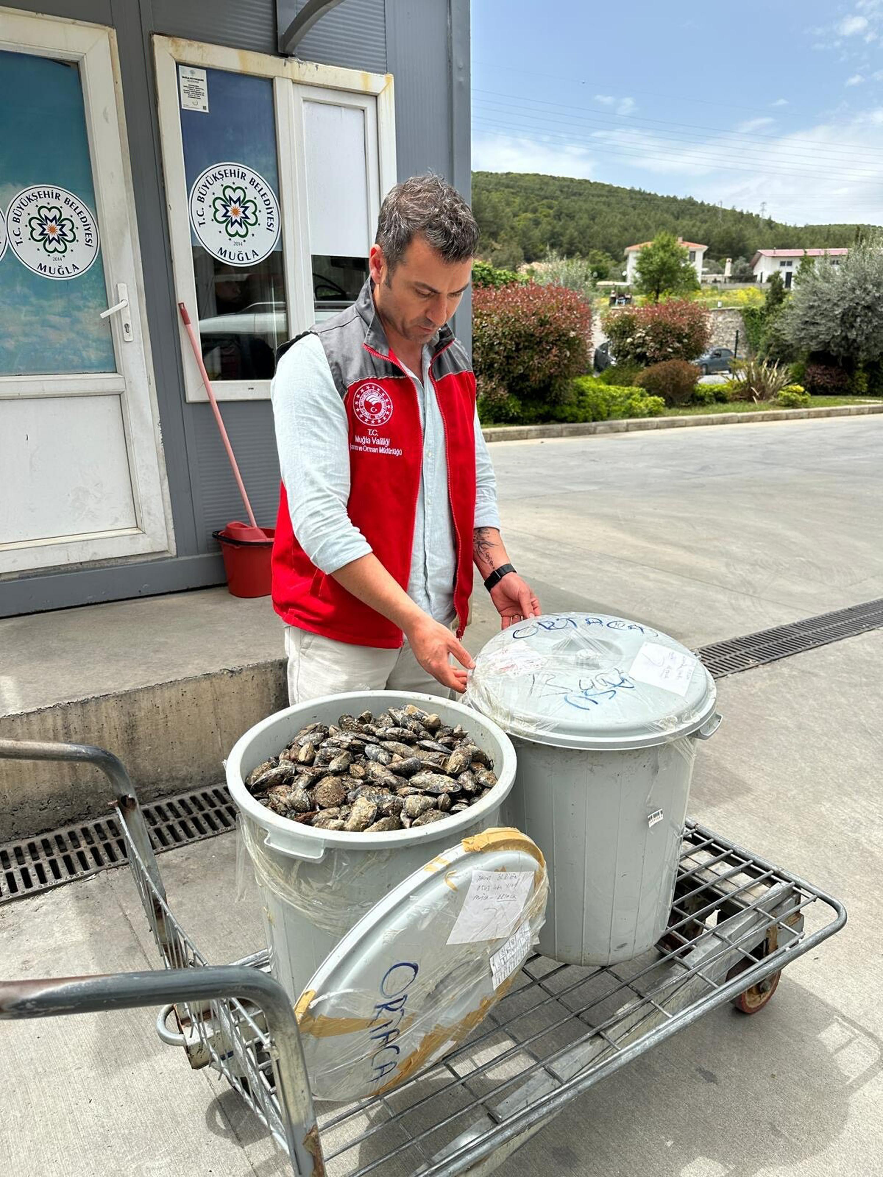 Denetimlerde bir otobüs bagajında hijyen kurallarına aykırı şekilde, çöp kovaları içinde taşınan yaklaşık 100 kilogram işlenmemiş midye tespit edilerek el konuldu.