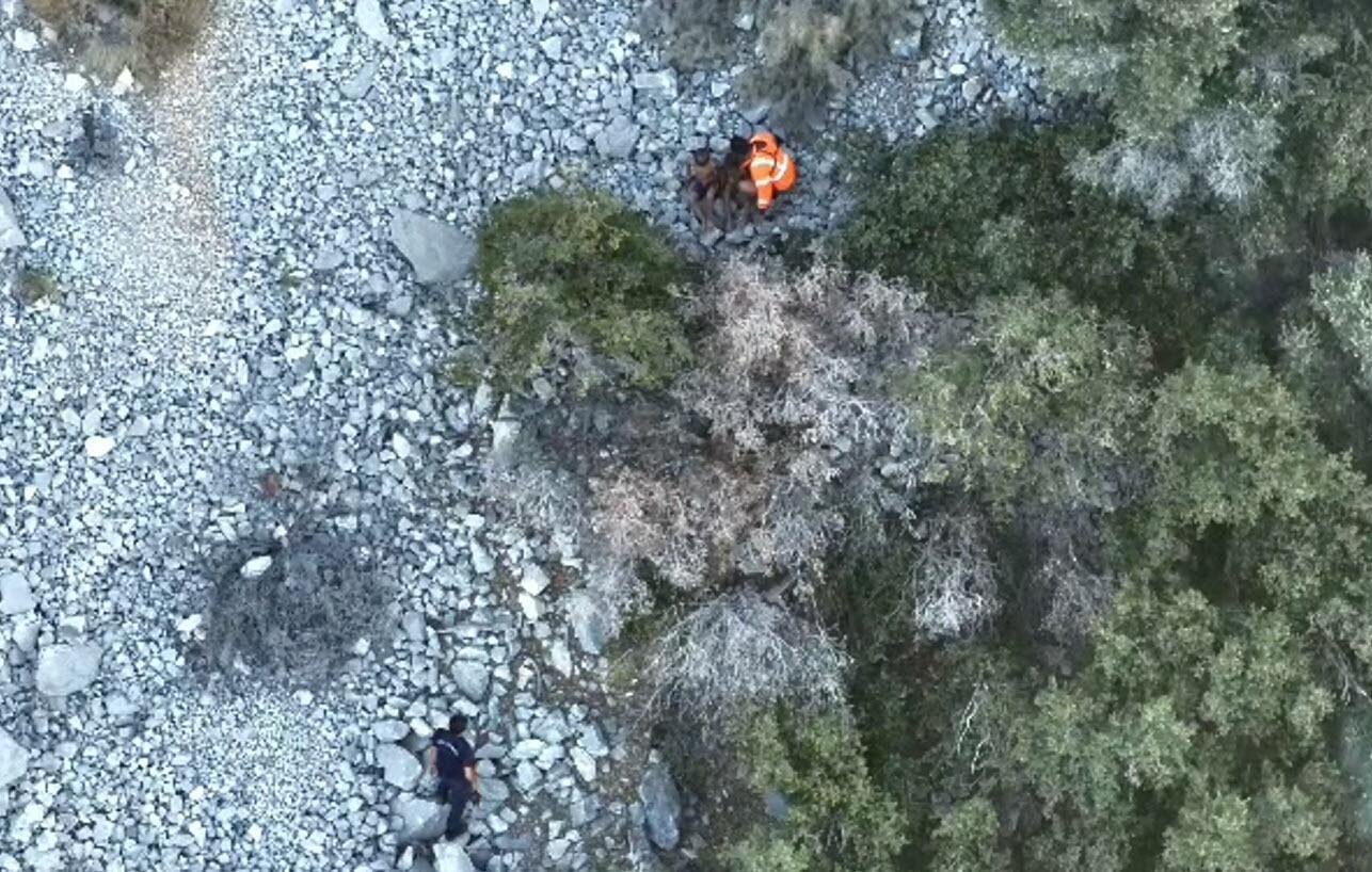 Muğla’nın Milas ilçesi açıklarında alabora olan teknede kurtarılan 6 kişinin ardından kaybolan ve yüzerek ulaştıkları kayalıklara tırmanan 2 çocuğun kurtarılmasına ilişkin dron görüntüleri ortaya çıktı. Görüntülerde, bölgeye ulaşan kurtarma ekibinden bir görevlinin kucağındaki çocuğu kayalıklarda oturan diğer çocuğun yanına oturttuğu, ardından kendisinin de yanlarına oturarak “Evet çocuklar, nasılsınız? İyisiniz değil mi? Biz şimdi alıp ailenize götüreceğiz" dediği anlar yer aldı.