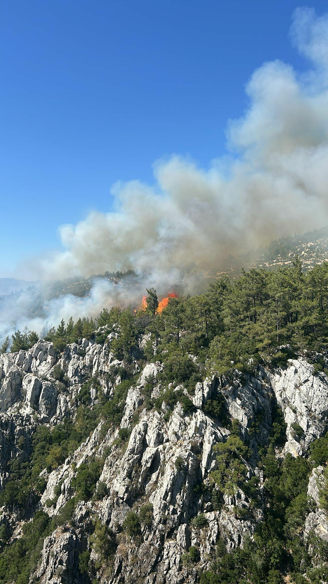 Fırat AKAY/MİLAS (Muğla), (DHA)- MUĞLA'nın Milas ilçesinde orman yangını çıktı. Alevlere havadan ve karadan müdahale ediliyor.