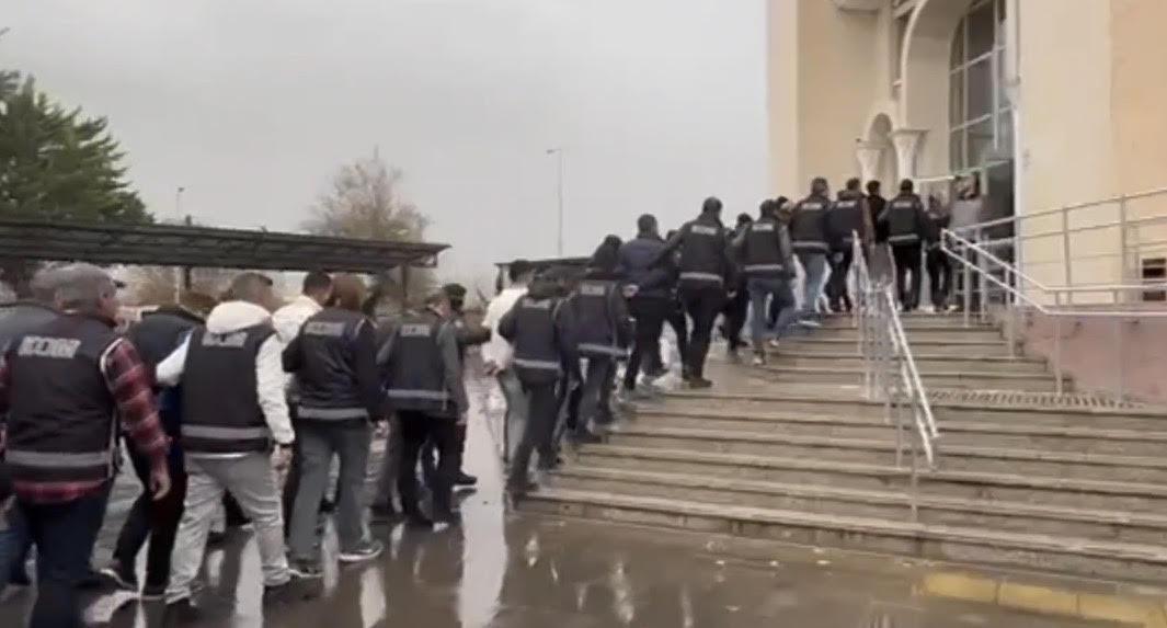 Polisteki işlemlerinin ardından adliyeye sevk edilen 15 şüpheliden 8’i çıkarıldıkları mahkemece tutuklandı, 7’si ise adli kontrol şartıyla serbest bırakıldı. (DHA)