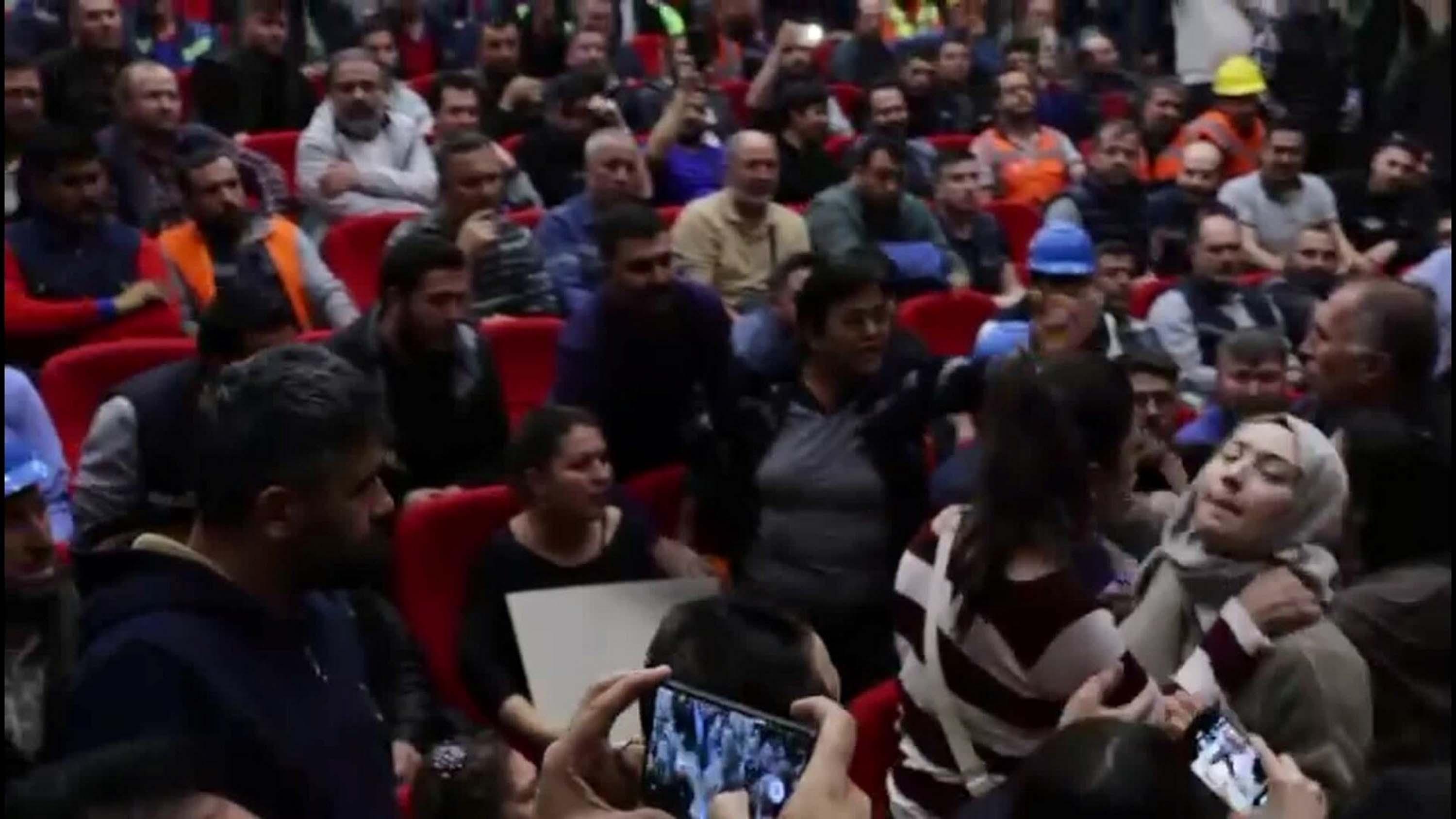 Cavit AKGÜN/MUĞLA, (DHA)- MUĞLA Büyükşehir Belediyesi'nin açtığı dava sonucunda Yatağan'da bulunan termik santralin yeraltı maden arama ruhsatının iptal edilmesi üzerine sendika üyeleri ile Başkan Aras arasında tartışma yaşandı. Aras ve sendika üyelerinin yaptığı toplantıda işçiler kürsüye baretlerini fırlattı, bir kadın gazeteci de saldırıya uğradı.