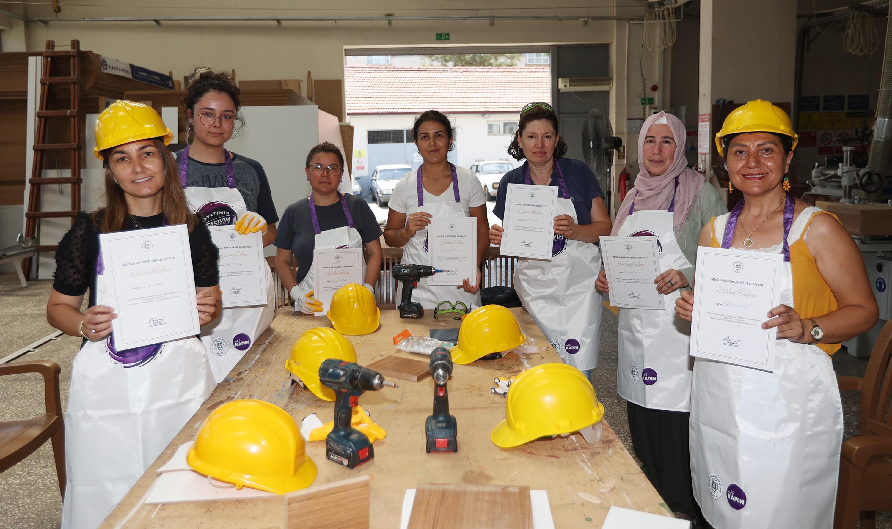 Muğla Büyükşehir Belediyesi, 'Hayatımın Ustasıyım' projesiyle kadınların teknik alanlardaki yetkinliklerini artırırken, toplumsal cinsiyet eşitliği konusunda farkındalık çalışmasına imza attı. Kadınların marangozluk, sıhhi tesisat, elektrik ve boyama gibi geleneksel olarak erkek mesleği olarak görülen alanlarda eğitim almasını sağlayan projede, katılımcılara dört hafta boyunca uygulamalı teknik eğitim verildi. Program sayesinde kadınların mesleki becerilerini geliştirirken, toplumsal cinsiyet rollerine dair kalıpları kıran bir dönüşümün parçası oldukları belirtildi.