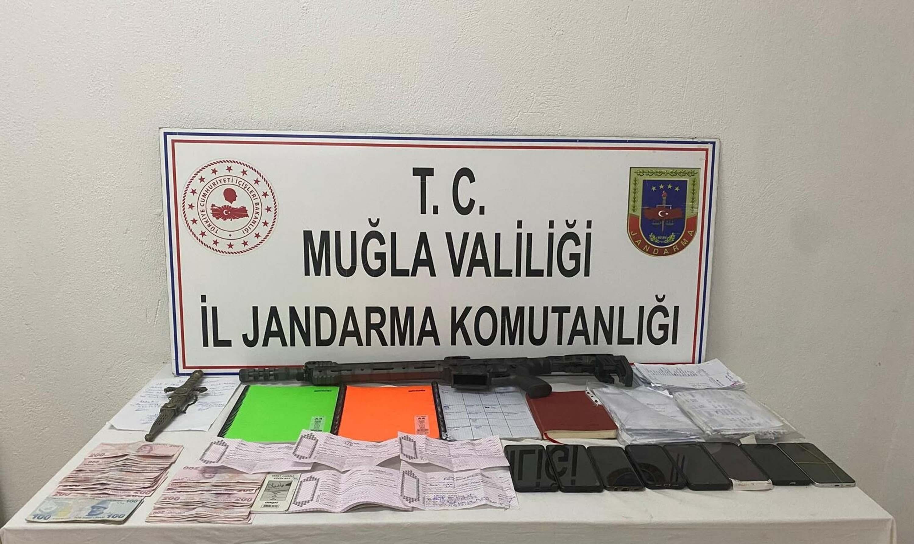 Muğla İl Jandarma Komutanlığı ekipleri, Ula ve Marmaris ilçelerinde tefecilik ile göçmen kaçakçılığı yapıldığı ve izinsiz yabancı çalıştırıldığı bilgisine ulaştı. Cumhuriyet Başsavcılığı koordinesinde geçen ekipler, 12 Şubat'ta eş zamanlı operasyon düzenledi. Şüphelilerin ev ve işlerinde yapılan aramalarda; 8 bin 500 lira, 3 adet gelir-gider kayıtlı not defteri, 630 bin TL bedelli senet, 36 boş senet, 1 el yazısı araç satış sözleşmesi, 346 alacak-verecek kayıtlı kağıt, 1 hançer, 1 ruhsatsız av tüfeği ile 8 cep telefonu ele geçirildi. Eylem Ç.’ye ait iş yerinde de Türkmenistan ve Özbekistan uyruklu 10 düzensiz göçmen yakalandı.