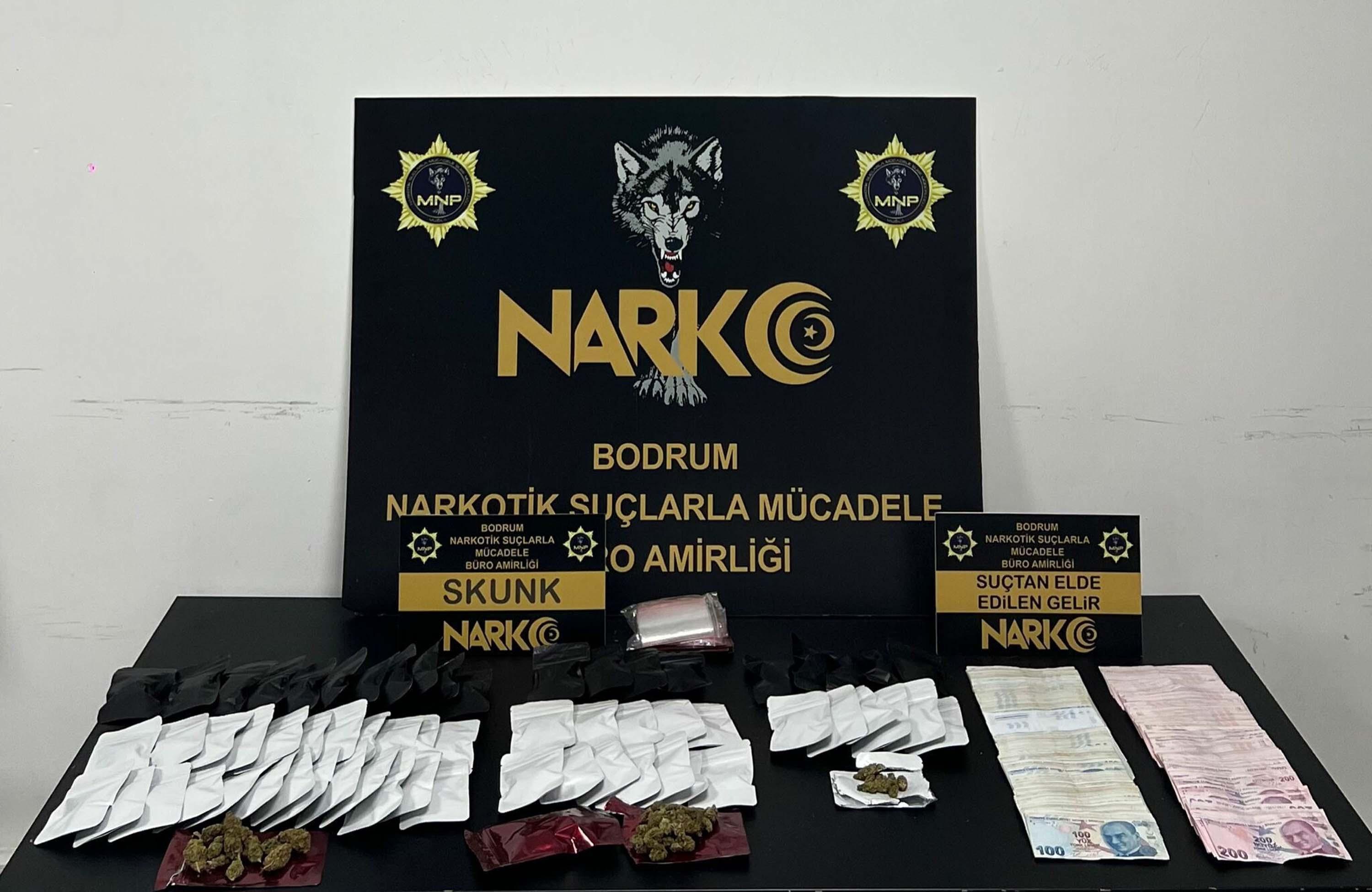 Muğla genelinde jandarma, emniyet ve Sahil Güvenlik ekiplerince, 1-15 Aralık tarihleri arasında uyuşturucu operasyonları düzenlendi. Cumhuriyet başsavcılıkları koordinesinde gerçekleştirilen 99 ayrı operasyonda, 564 gram skunk,28 gram metamfetamin, 61 gram kokain, 99 sentetik ecza, 4 kök Hint keneviri, 58 gram sentetik kannabinoid, 1 gram eroin, 12 ecstasy, 730 gram kubar esrar, 16 LSD, 7 gram amfetamin 4 gram kenevir tohumu, 32 gram psikoaktif mantar, 13 adet uyuşturucu kullanma aparatı, 3 hassas terazi, 80 bin 500 lira ele geçirildi.
