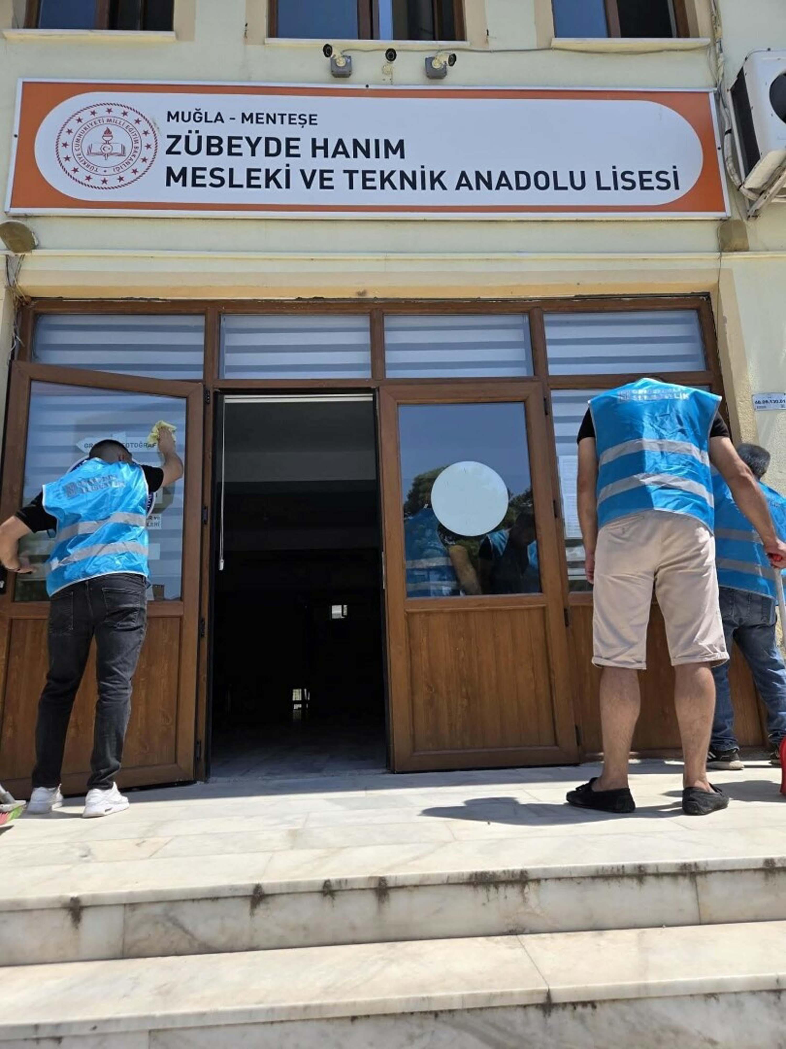 Cavit AKGÜN / MUĞLA, (DHA)-MUĞLA Denetimli Serbestlik Müdürlüğü yükümlüleri, yaz tatilinde Menteşe ilçesindeki lisede temizlik, bakım ve onarım çalışmaları gerçekleştirdi.