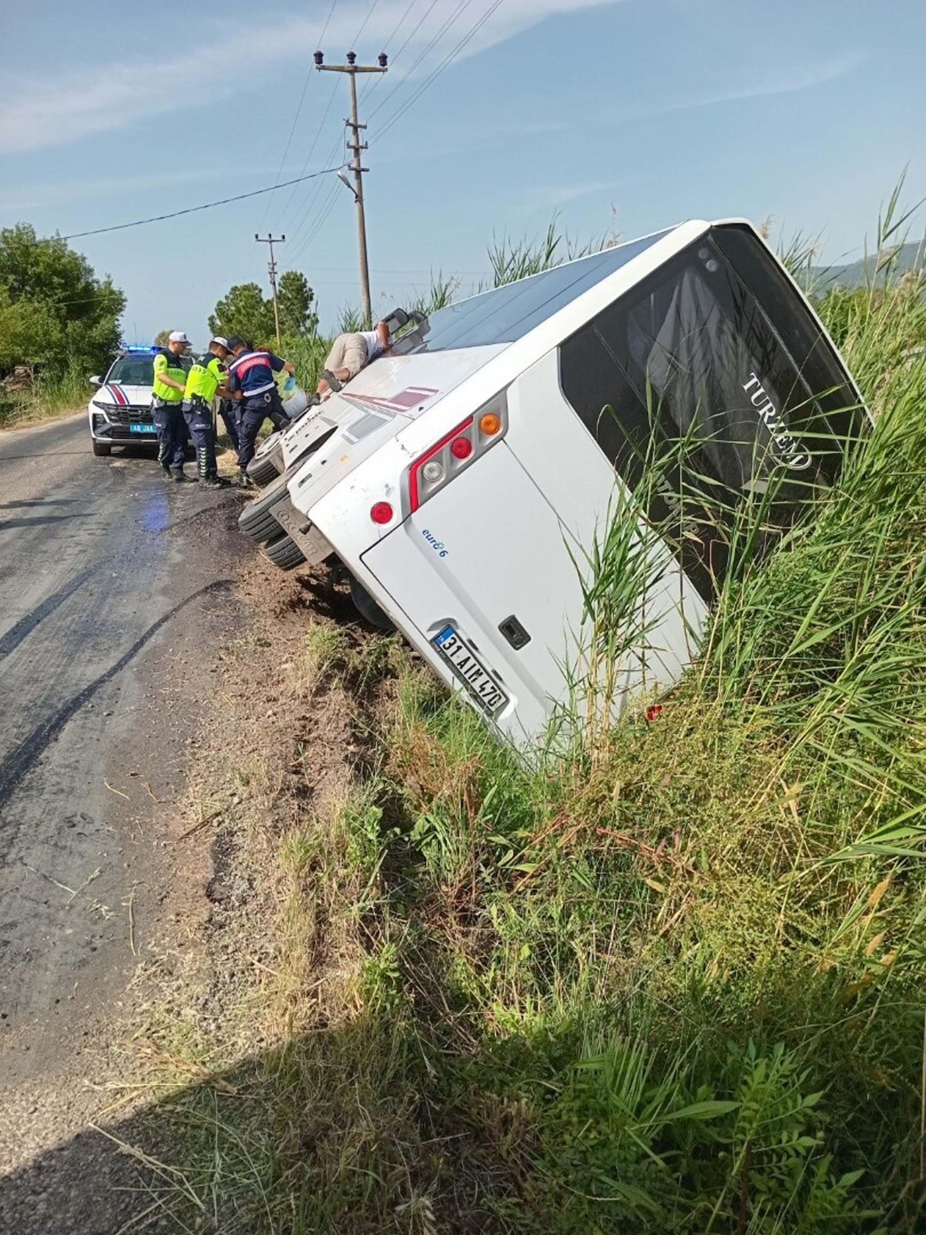 Kaza, saat 10.30 sıralarında Ortaca'nın Eskiköy Mahallesi'nde meydana geldi. Turistleri taşıyan, Abdullah Çelikten (25) idaresindeki 31 AIM 470 plakalı midibüs, sürücüsünün direksiyon kontrolünü kaybetmesi sonucu sulama kanala devrildi. Çevredekilerin ihbarıyla kaza yerine polis, jandarma, sağlık ve itfaiye ekipleri sevk edildi. 20 Hollanda uyruklu turist ile 3 görevli personel olmak üzere 23 kişi, ekiplerin müdahalesiyle midibüsten çıkartıldı. Yaralanan 1 turist, ilk müdahalenin ardından ambulansla hastaneye kaldırıldı. Turistin sağlık durumunun iyi olduğu öğrenildi.