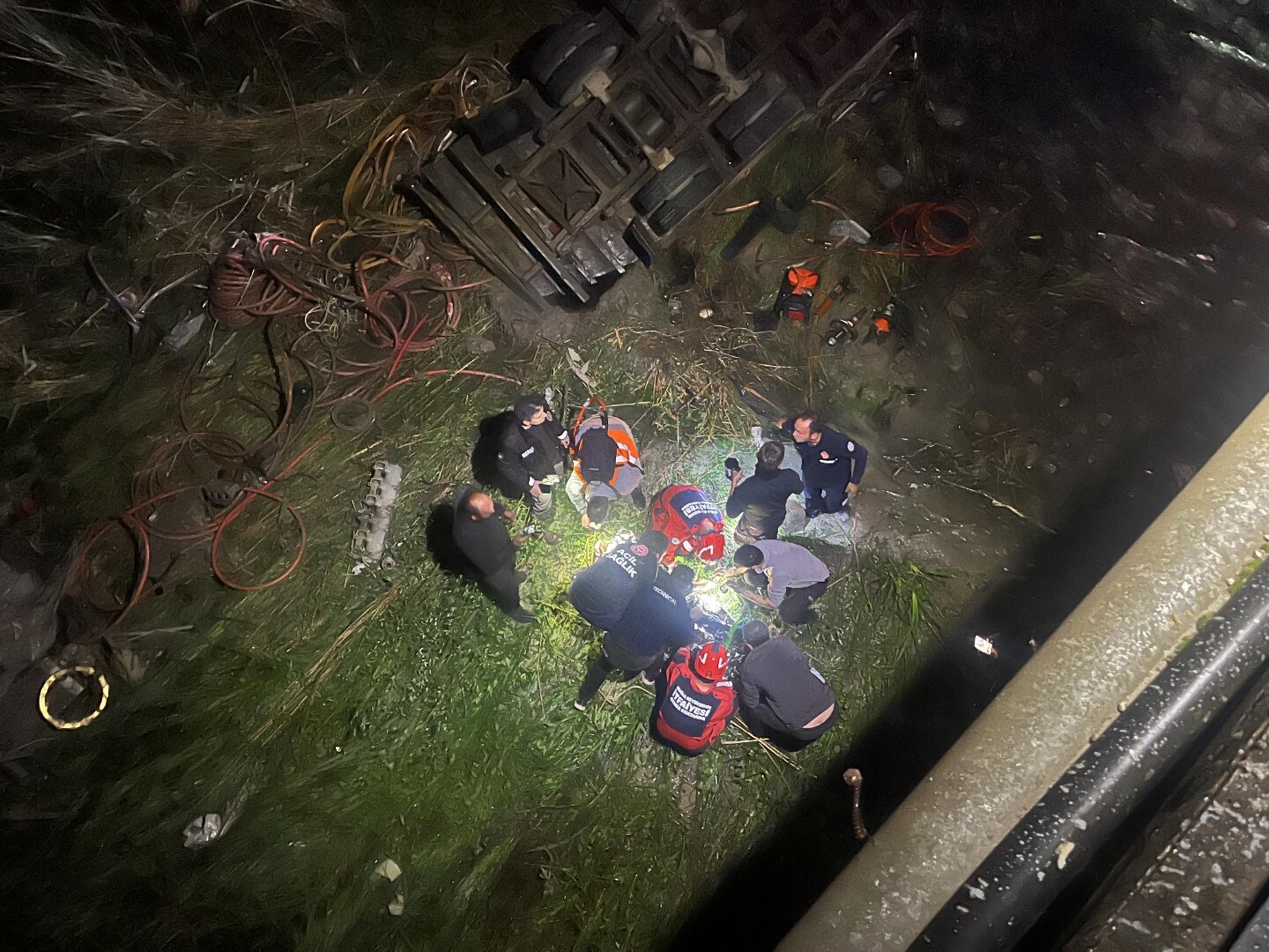 Freni boşalan kamyonet, otomobillere çarpıp Eşen Çayı’na uçtu; 2 yaralı