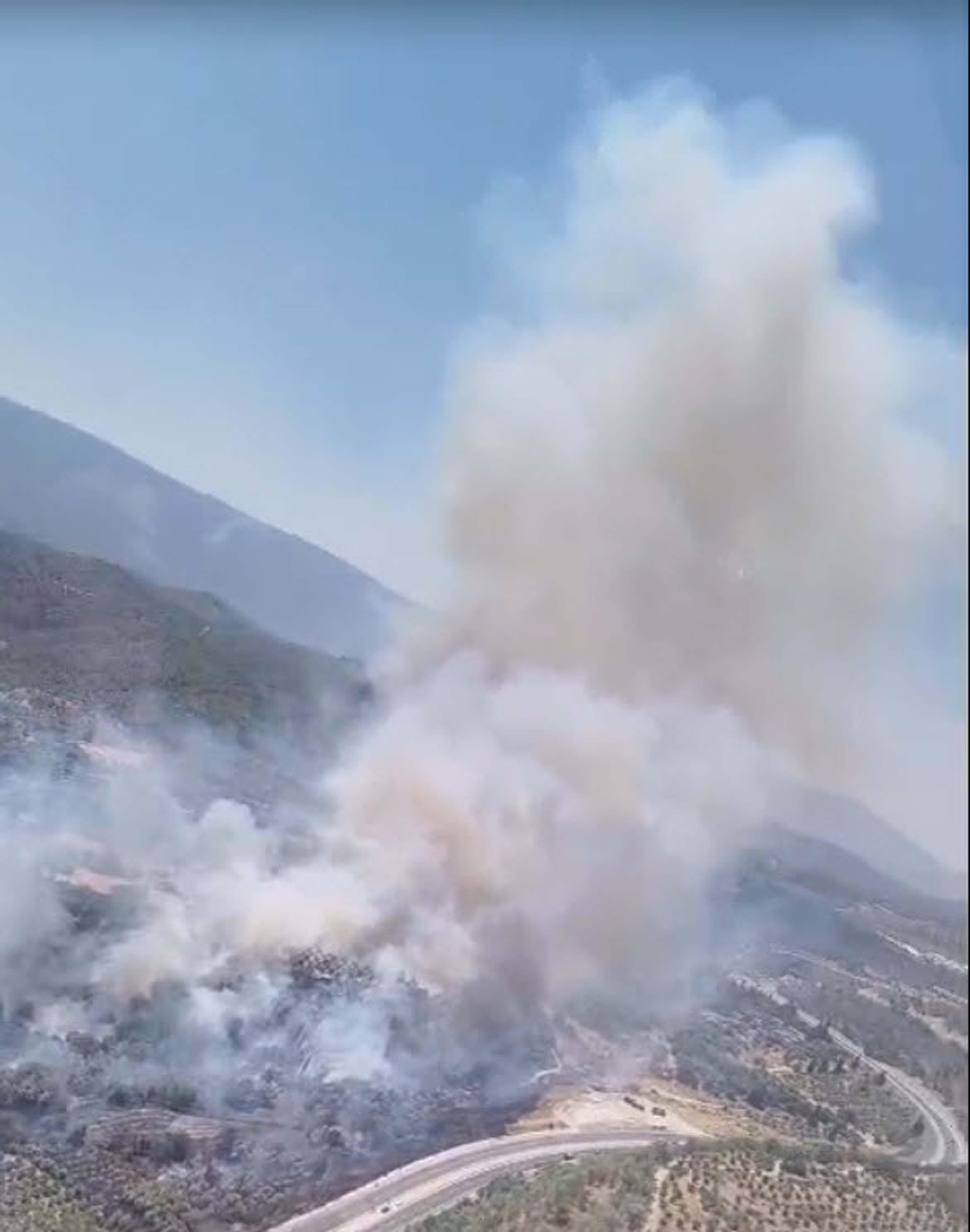 Eskihisar Mahallesi Yatağan-Milas kara yolu Stratonikeia Antik Kenti yakınlarındaki tarım arazisinde, saat 12.30 sıralarında yangın çıktı. Alevleri ve dumanı görenler, durumu orman ekiplerine bildirdi. İhbarla bölgeye ekipleri sevk edildi. Alevlere, havadan ve karadan müdahale sürüyor. (DHA)