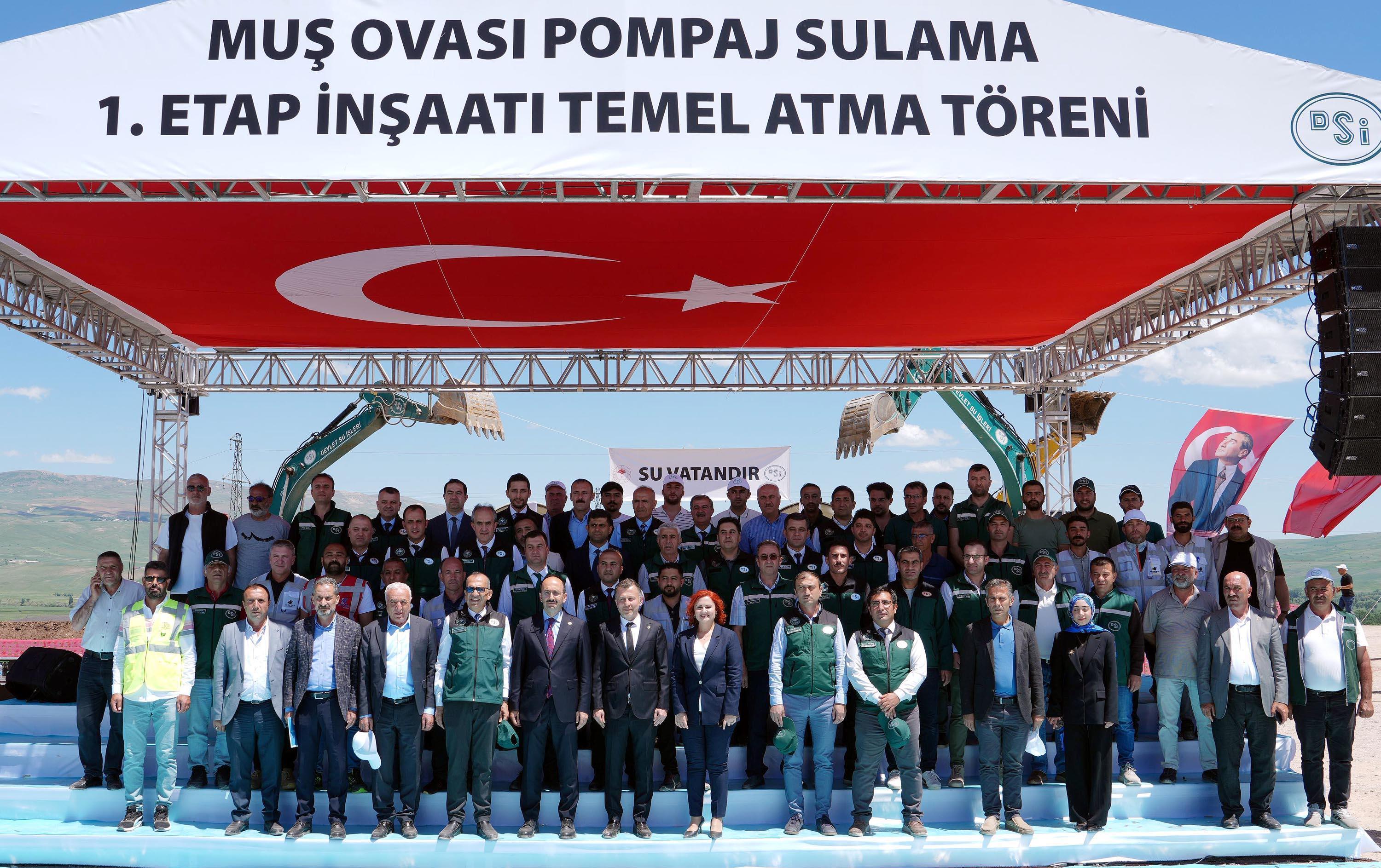 Bu başarının sürdürülebilir olması için bugünden, geleceği iyi okumak gerektiğini ifade eden Bakan Yumaklı, "Perşembenin gelişi, çarşambadan bellidir" diyerek, "Küresel iklim krizi bu manada sektörümüz için en önemli risk kaynağı olarak karşımıza çıkıyor. Bu durumun en önemli etkilerinden biri de kuraklık. Kuraklıkla mücadele için de su ve sulama yatırımlarını günümüzün ve geleceğimizin teknolojisine uyumlu planlayıp hayata geçirmemiz gerekiyor. Küresel ısınmadan Akdeniz Havzası'ndaki ülkelerin en çok etkileneceği öngörülüyor. 100 yıllık projeksiyonlara baktığımızda, havzalarımızdaki su varlığının yüzde 25'e varan oranlarda azalacağını görüyoruz. Bu durum, tarımsal üretimin en önemli girdilerinden olan su kaynaklarının yönetimi konusunda son derece dikkatli olmamız gerektiğini gösteriyor. Dolayısıyla, sulama alanında da önemli çalışmaları hayata geçiriyoruz. Bu minvalde, yeni baraj ve göletlerle depolama kapasitemizi artırıyoruz. Su kaynaklarına sahip çıkmak için yer altı depoları kuruyoruz. Kullanılmış suların arıtılıp yeniden tarımsal üretimde kullanılmasını yaygınlaştırıyoruz. 2028 yılına kadar kapalı sulama sistemi oranını yüzde 45'e çıkarmayı hedefliyoruz. Yapay zeka destekli sulama otomasyonu uygulamalarıyla, tarımsal verimi artırırken, su sarfiyatını azaltıyoruz. Sulamada enerji ihtiyacını karşılamak için ilk yüzer GES'i kurduk ve enerji üretimine başladık. Daha birçok eseri hayata geçirdik ve geçirmeye devam ediyoruz. Son 23 yılda su ve sulama alanında güncel rakamlarla 3,3 trilyon TL yatırım yaparak 10 bin 663 tesisi hizmete aldık. Bu dev yatırımlardan Muş şehrimiz de nasibini almıştır. Sadece su ve sulama yatırımlarında bu güzel şehre 34 milyar liralık yatırım yaparak, toplam 67 adet tesis hizmete sunduk. Bugün bu eserlere yeni bir tanesini daha eklemek için bir aradayız. Muş Ovası Sulama Projesi'ni 3 ETAP halinde yapacağız. Su kaynağı Alpaslan 2 Barajı olan proje tamamlandığında, 780 bin dekar alanı sulayacak Muş Ovası Pompaj Sulaması, yörenin bereketine bereket katacak" dedi.