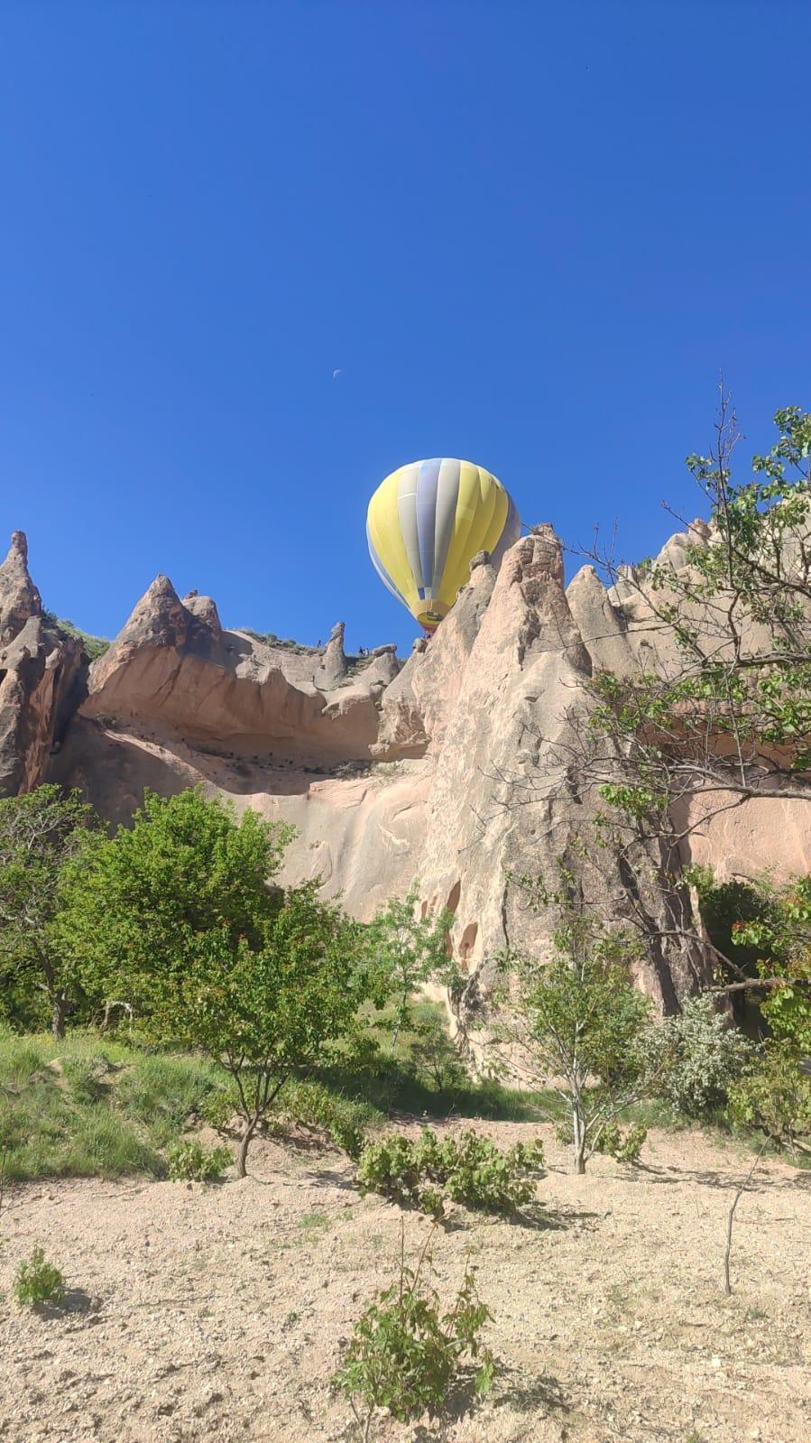 Kapadokya'da sıcak hava balonu, kayalıklara zorunlu iniş yaptı