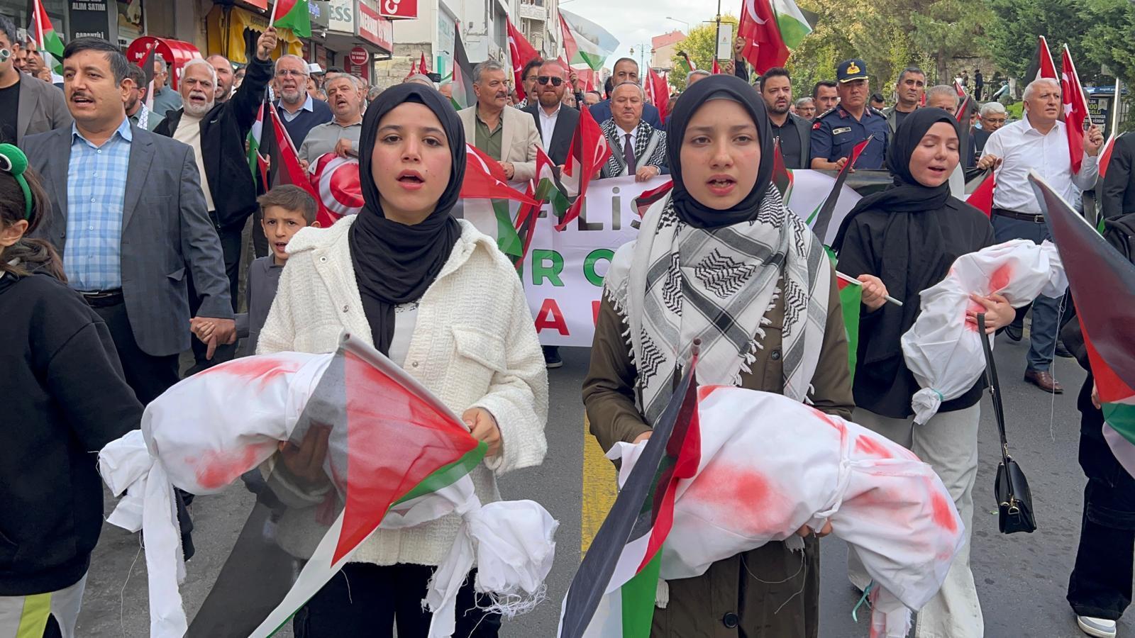 Ahmet KORKMAZER/ NEVŞEHİR(DHA)- NEVŞEHİR'de, İsrail'in Gazze Şeridi'ne insani yardım girişini engelleyen ablukasını kırmak ve bölgeye insani yardım ulaştırmak için yola çıkan Küresel Sumud Filosu'na destek amacıyla ‘Kararlılık Yürüyüşü’ düzenlendi.