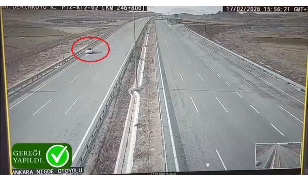 İl Jandarma Komutanlığı Otoyol Jandarma Komutanlığı ekipleri trafik ve asayiş olaylarının önlenmesi amacıyla yol emniyet ve kontrol faaliyetlerine devam ediyor. Ankara- Niğde Otoyolu Derinkuyu kavşağı mevkisinde M.K. isimli sürücünün otomobiliyle trafik güvenliğini tehlikeye sokacak şekilde ters istikamette gittiği belirlendi. Kamera görüntülerini inceleyen ekipler M.K.'ya Karayolları Trafik Kanunu’nun ilgili maddesi gereğince trafik idari para cezası uyguladı. O anlar ise otoyol güvenlik kameraları tarafından kaydedildi.