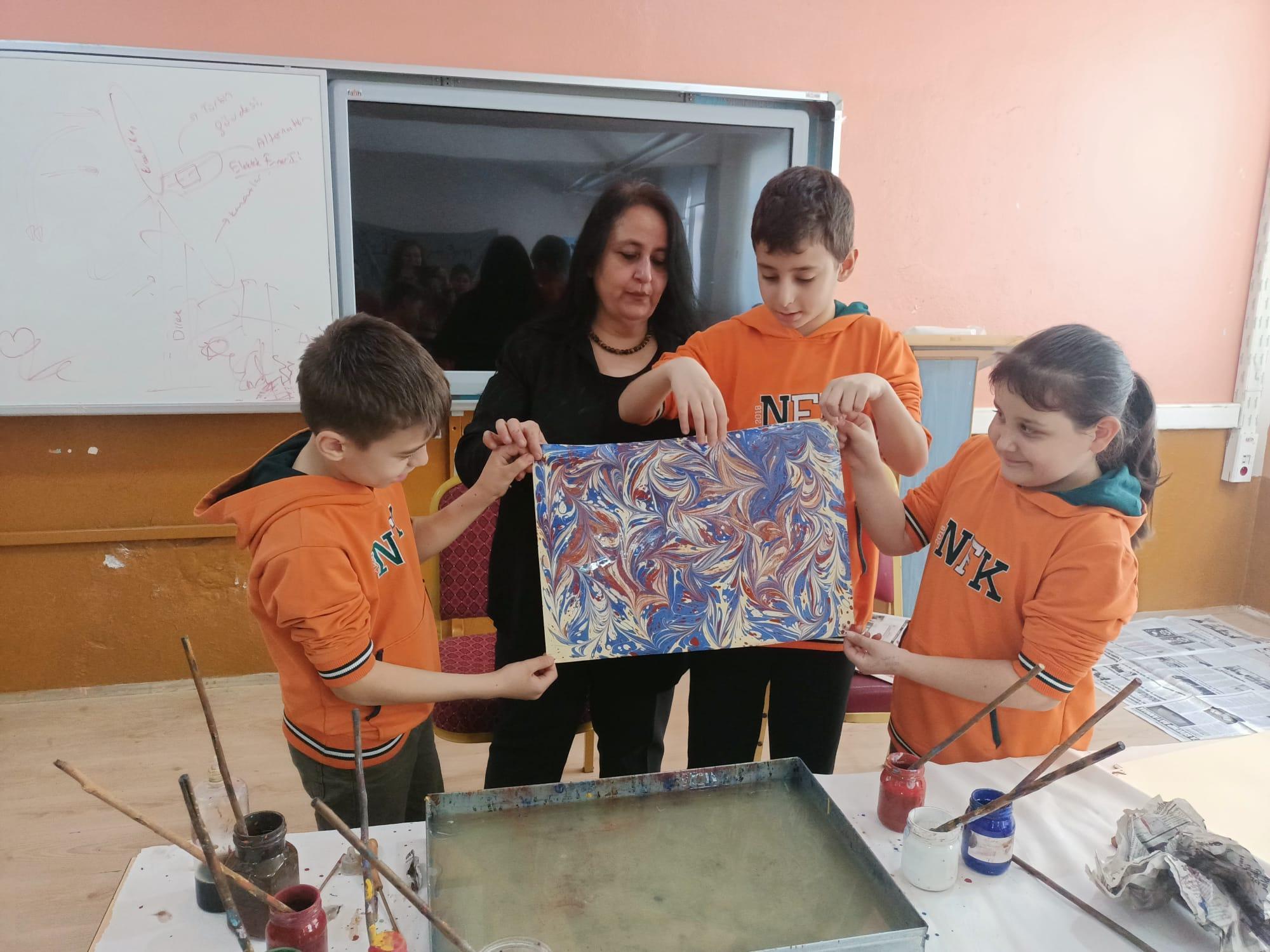 Toplam 27 öğrencinin katıldığı etkinlikte, geleneksel Türk sanatlarından biri olan ebru sanatının temel teknikleri uygulamalı olarak anlatıldı. Öğrenciler suyun üzerinde oluşan renkli desenleri kağıda aktararak kendi ebru çalışmalarını yapma fırsatı buldu. Etkinlikte sınıf öğretmeni Hasret Çiçekdal ve okul müdürü Gökhan Balcı da yer aldı. Program boyunca öğrenciler hem geleneksel sanatla tanıştı hem de keyifli anlar yaşadı.
