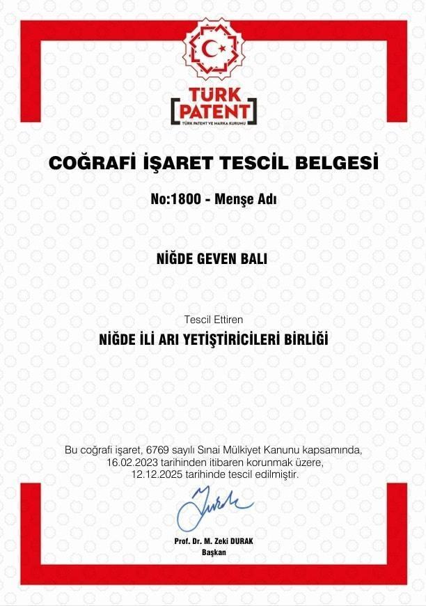 Adnan ÇELEBİ/NİĞDE,(DHA)- NİĞDE'ye özgü Geven balı, coğrafi işaret tescil belgesi alarak resmen tescillendi.