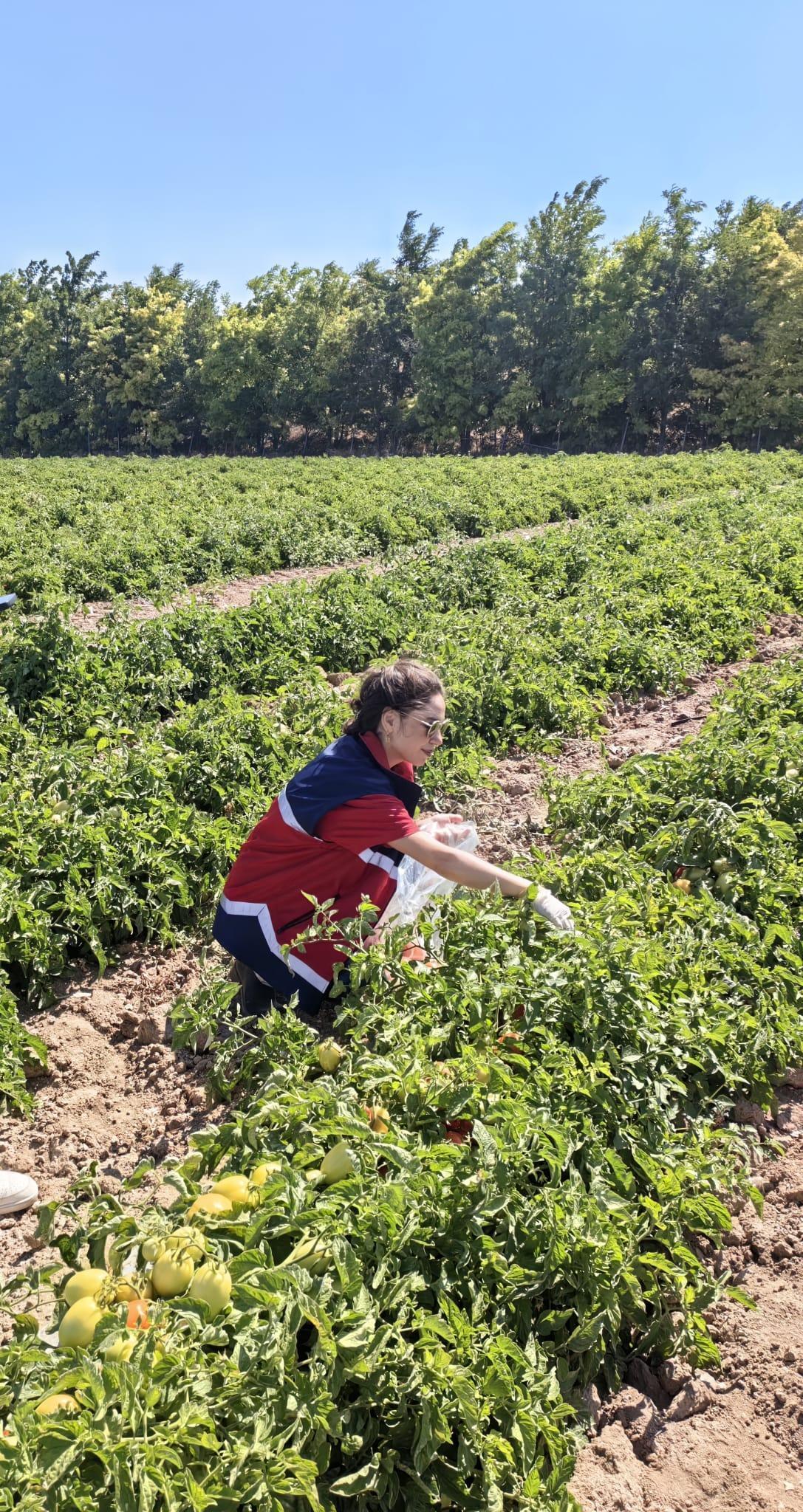 Adnan ÇELEBİ/NİĞDE,(DHA)- NİĞDE İl Tarım ve Orman Müdürlüğü, Bitkisel Üretim ve Bitki Sağlığı Şube Müdürlüğü teknik personeli tarafından domates hasadı öncesinde pestisit denetimi yapıldı.