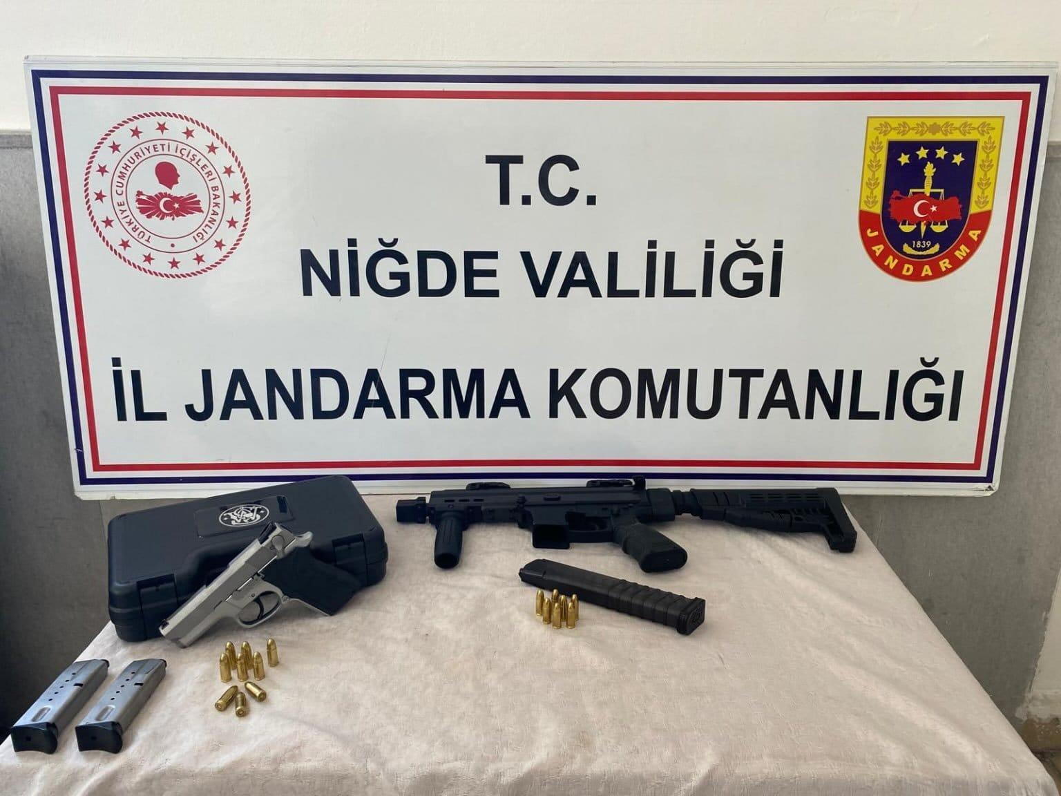 Adnan ÇELEBİ/ NİĞDE, (DHA)- NİĞDE'de jandarmanın düzenlediği operasyonda ruhsatsız 2 silah ele geçirilirken 1 kişi de gözaltına alındı.