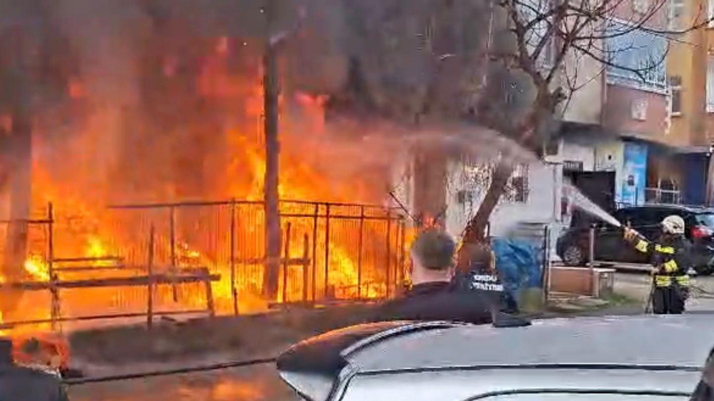 Hırdavat dükkanının bahçesinde yangın