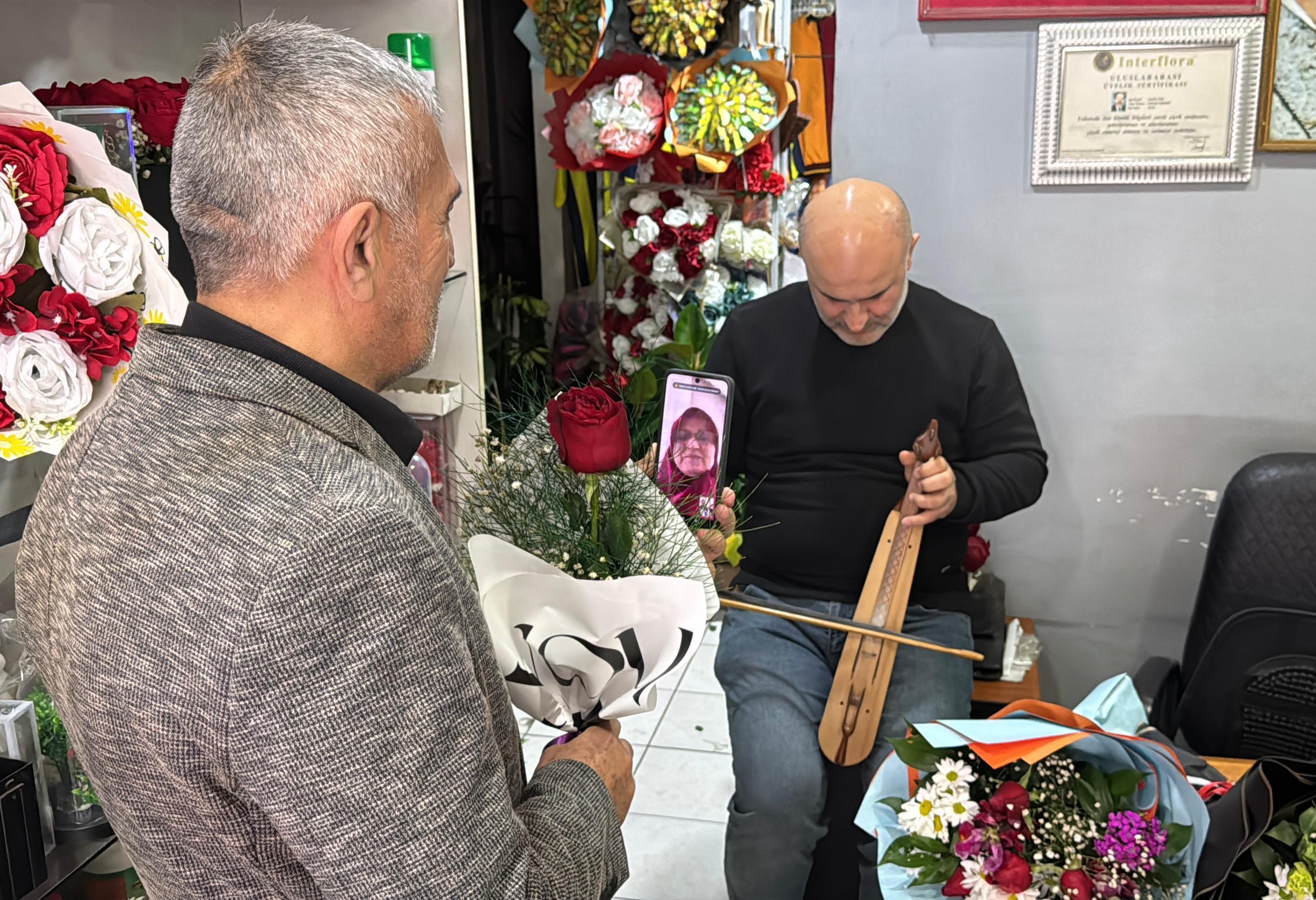 40 yıldır evli olan 3 çocuk babası Dursun Çelebi (69), eşi Zehra Çelebi’ye ilk kez Sevgililer Günü’nde çiçek aldığını belirterek, “Çiçekçi dükkanının camında asılı olan yazıyı gördüm ve içeri girdim. 65 yaş üzeri olduğum için eşime ücretsiz gül aldım. Eşimi görüntülü aradım ve bizim için kemençe çaldı. Çok güzel oldu, duygu dolu anlar yaşadık. Kendisine çok teşekkür ederiz” dedi. (DHA)