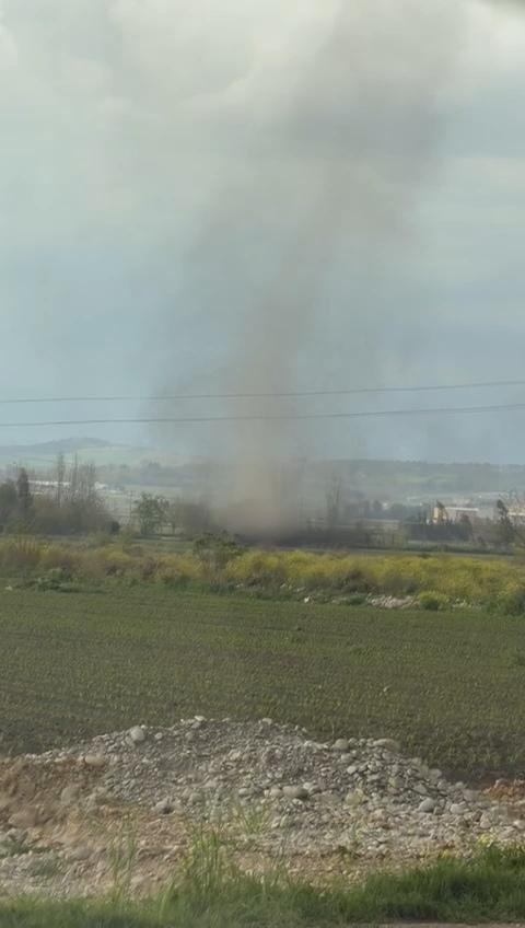 Osmaniye'nin Kadirli ilçesinde sağanak öncesi hortum çıktı. Yağış başlamadan Adana kara yolu Soysallı mevkisinde meydana gelen hortum, bir vatandaş tarafından cep telefonu kamerasıyla kayda alındı. Boş arazide çıkan hortum, herhangi bir zarara yol açmadı. (DHA)