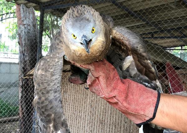 Bitkin halde bulunan bayağı arı şahini, kontrolün ardından doğaya bırakıldı