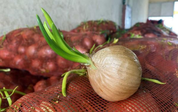 Filizlenmiş soğan ve patatesler, toprakla buluşturulacak
