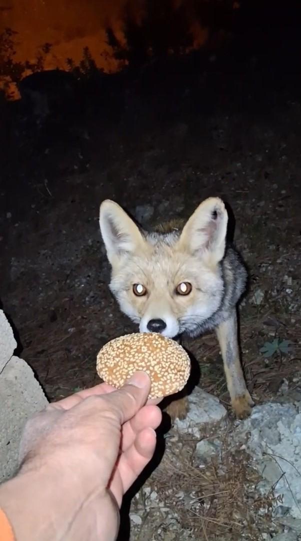 Amanos Dağları eteklerindeki Zorkun Yaylası çarşı merkezinde fırın işletmeciliği yapan Murat Altun, gece saatlerinde dükkanının önüne bir tilkinin geldiğini fark etti. Altun, fırında pişirdiği geleneksel lezzet olan bayram kömbesini tilkiye doğru uzattı. Tilki, Altun’un elindeki kömbeyi alıp, uzaklaştı. Tilkinin kömbeyi yiyip, bir süre çevrede dolaştıktan sonra gözden kaybolduğu anlar, cep telefonu kamerasıyla kaydedildi. (DHA)