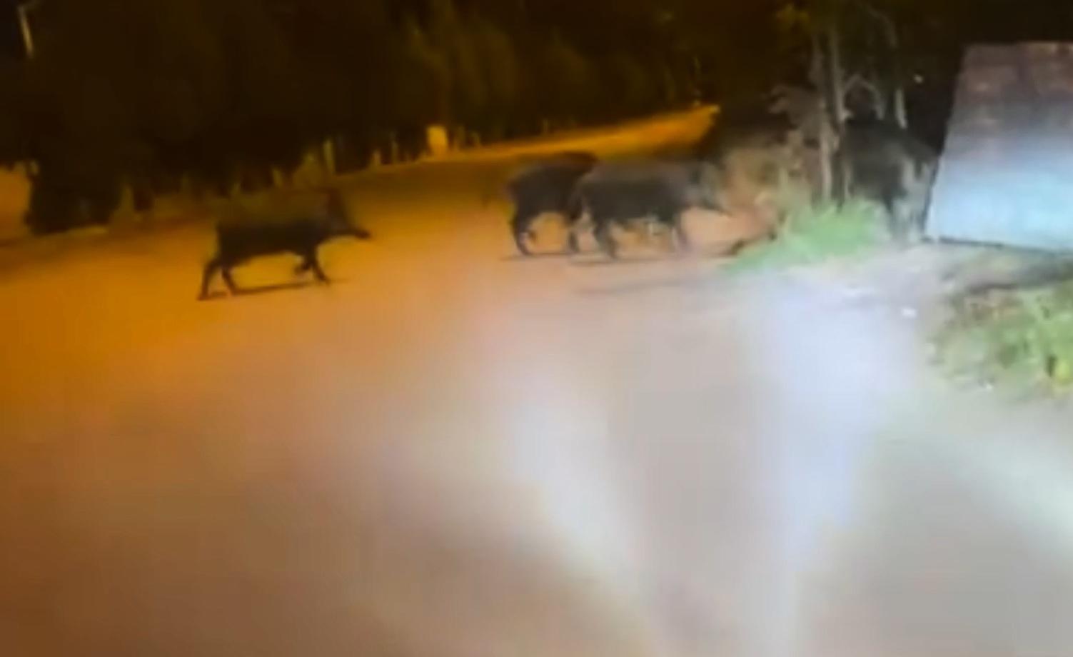 İbrahim EMÜL / OSMANİYE (DHA) – OSMANİYE’de, yiyecek arayan yaban domuzları, gece saatlerinde şehir merkezine indi. Merkez Akyar Mahallesi Polisevi yolu üzerinde gezen domuz sürüsü, vatandaşların cep telefonu kameralarına yansıdı. Görüntülerde, aç kalan yaban domuzlarının yiyecek ararken araçların farları ve çalınan kornalar nedeniyle paniklediği, bir evin bahçesine girip ardından hızla ormanlık alana yönelerek gözden kaybolduğu görüldü. (DHA)