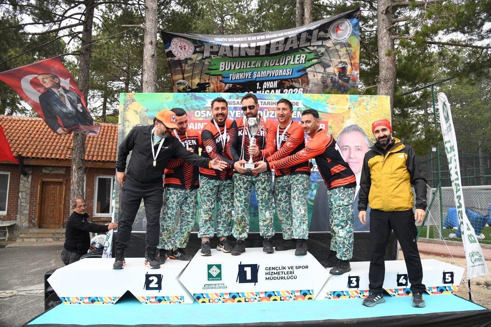 İbrahim EMÜL/ OSMANİYE, (DHA) – OSMANİYE’de düzenlenen Türkiye Paintball Şampiyonası 1'inci ayak yarışmasında dereceye girenlere kupaları verildi. Zorkun Yaylası Şenlik Tepesi Spor Tesisleri’nde iki gün süren karşılaşmalar, büyük çekişmeye sahne oldu.