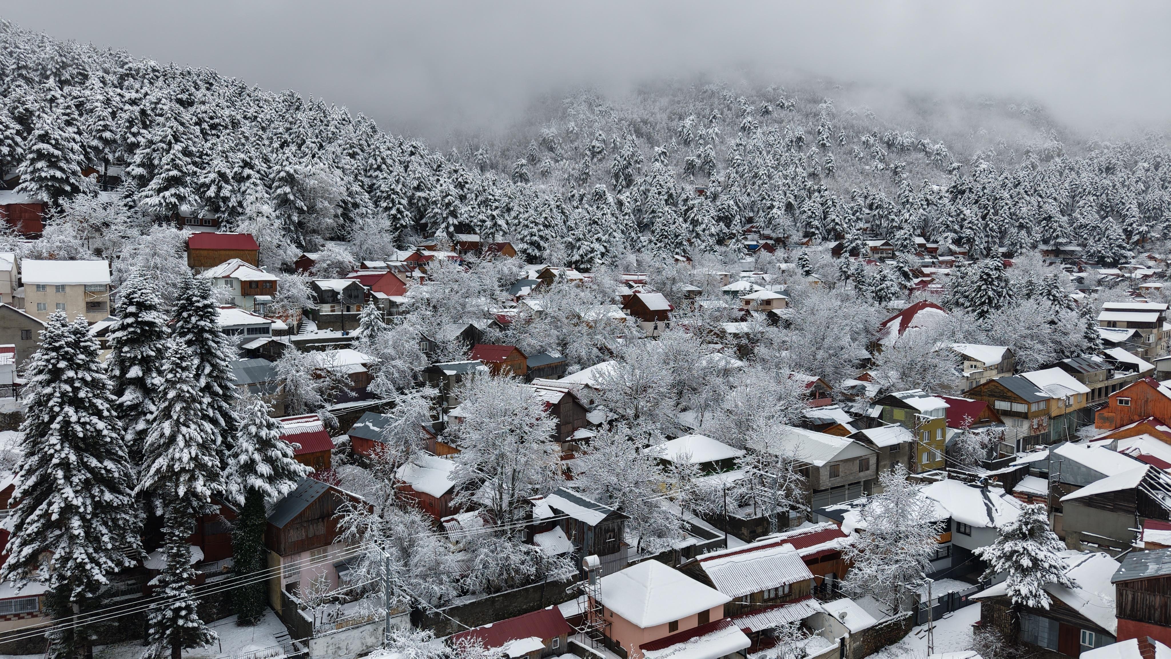 Osmaniye'nin yüksek kesimlerinde kar yağışı etkili oldu. Amanos Dağları eteklerinde bulunan Zorkun, Olukbaşı, Küreci, Mitisin yayları ile Hatay'ın Erzin ilçesine bağlı Karıncalı Yaylası, kar yağışı sonrası beyaz örtüyle kaplandı. Çam ağaçlarının dallarına tutunan kar ve sis bulutları ile çevrili yayla evleri, görsel şölen sundu. Eşsiz manzarayı görmek için bölgeye akın edenler, dönüş yolunda güneşin batışı ile Akdeniz'in mavi sularını izleme fırsatı buldu. Güneş ışınlarının denizin mavi sularına yansıdığı anlar da dron kamerasıyla kaydedildi. (DHA)