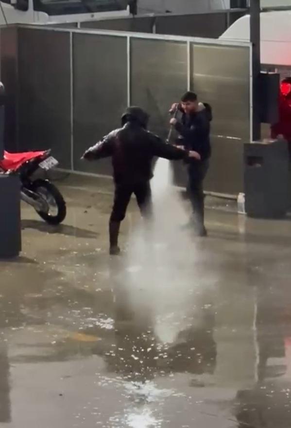 İbrahim EMÜL/OSMANİYE (DHA)- OSMANİYE’nin Toprakkale ilçesinde, off-road etkinliğinden dönen motosiklet sürücüsü, akaryakıt istasyonunda basınçlı suyla kendini yıkatıp, üzerindeki çamurları temizledi. O anlara ilişkin görüntüler, sanal medyada ilgi gördü.