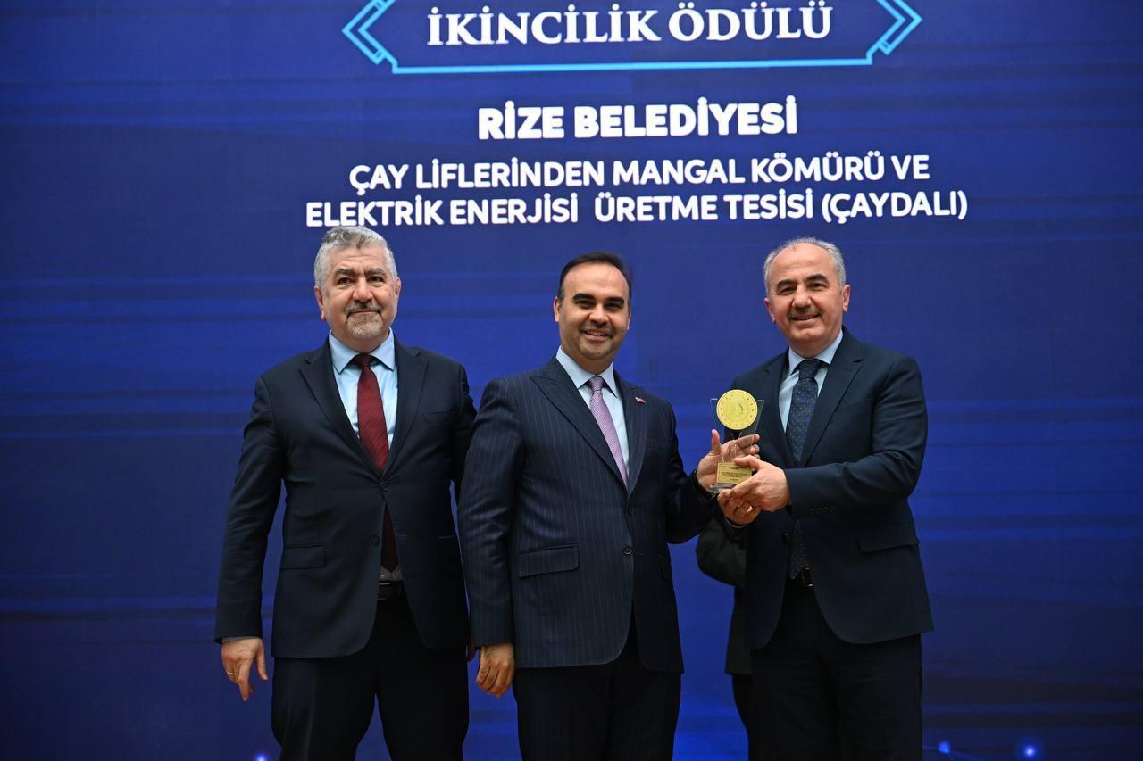 Doğu Karadeniz’de 830 bin dekar alanda yapılan çay tarımında oluşan çay çöpü liflerinin geri dönüştürülmesi amacıyla, Rize Belediyesi tarafından Kalkandere ilçesindeki organize sanayi bölgesinde 12 dönümlük alanda tesis kuruldu. Tesiste, çöp lifleri karbonla preslenerek yılda 2 bin ton mangal kömürü elde edilirken, bu sırada çıkan metan gazıyla saatte 0,8 megavatlık elektrik enerjisi üretiliyor. Yılda 30 milyon TL gelir elde edilen tesis, çay lifinin işlenmesi sırasında ortaya çıkan ısının yanı sıra 4 bin 200 metrekarelik çatısına yerleştirilen güneş panellerinden de elektrik üretebiliyor. Ar-Ge çalışmaları sonucunda tarım ve evcil hayvanlar için çeşitli yan ürünler oluşturulmasına yönelik çalışmaların sürdüğü tesiste üretilen mangal kömürleri Almanya ve İngiltere başta olmak üzere birçok Avrupa ülkelerine ihraç ediliyor. Çay çöpünden katma değer üretip enerjisini kendi kendine sağlayan tesis, Sanayi ve Teknoloji Bakanlığı tarafından düzenlenen Verimlilik Proje Ödülleri kapsamındaki 'Sürdürülebilir Üretim Yöntemlerinde Verimlilik' kategorisinde Türkiye 2'nciliği ödüle layık görüldü. Ankara'da düzenlenen törenle, Sanayi ve Teknoloji Bakanı Mehmet Fatih Kacır tarafından Rize Belediye Başkanı Rahmi Metin'e ödül takdim edildi.