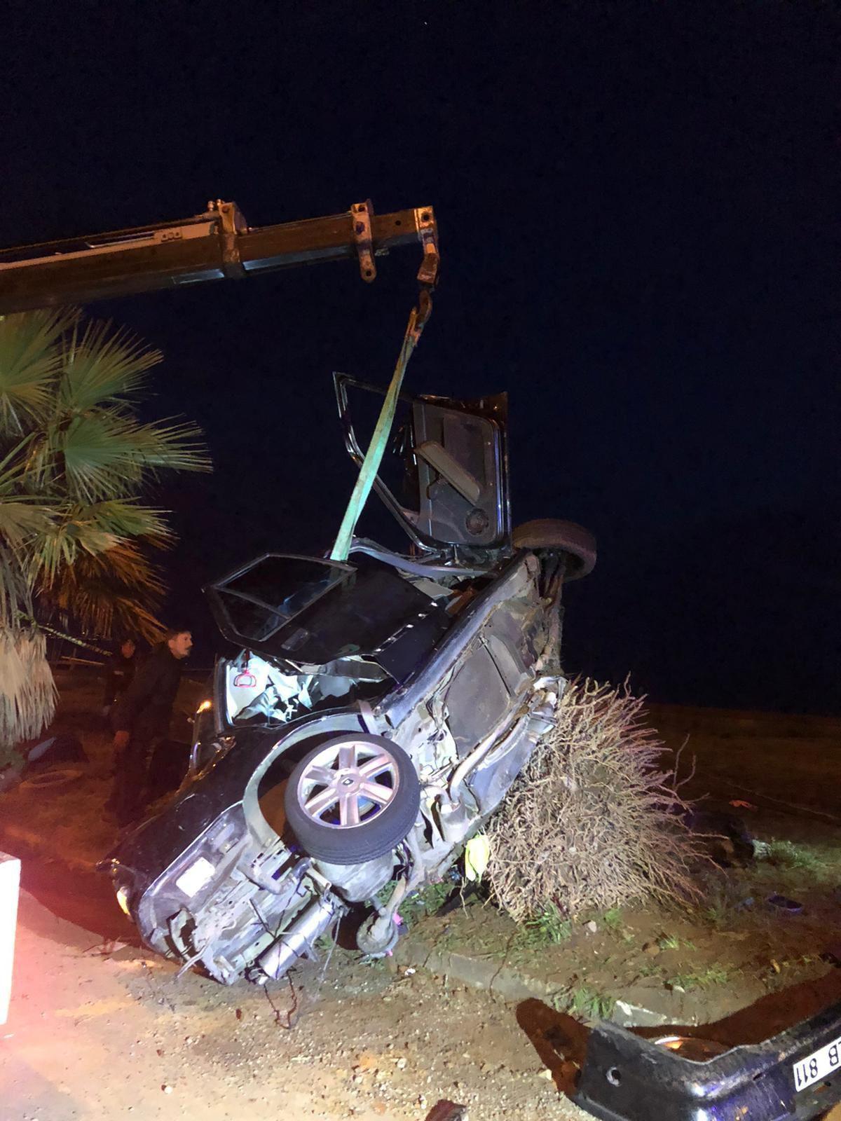 Mehmet Can PEÇE/FINDIKLI (Rize), (DHA)- RİZE’nin Fındıklı ilçesinde takla atarak yol kenarındaki palmiye ağacına çarpan otomobildeki sürücü İsmail Baykal (28) ile Hasan Çatalbaş (25) hayatını kaybetti, 3 kişi yaralandı.
