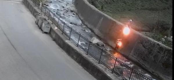 Olay anı ise çevredeki özel çay fabrikasına ait güvenlik kamerasına yansıdı. Görüntüde, teleferik telini tutan 2 kişinin, aniden çıkan alev sonrası akıma kapılıp, dereye düştüğü görülüyor. (DHA)