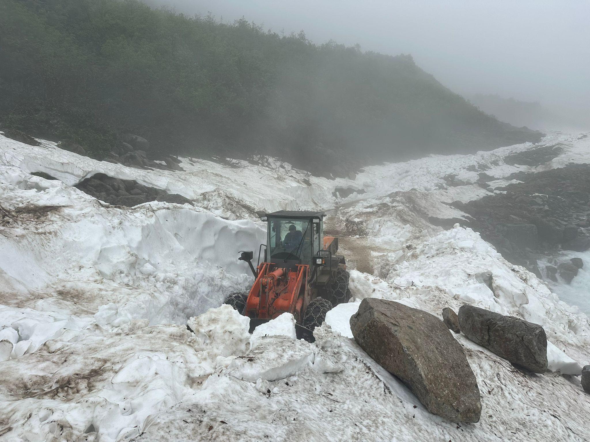 Mehmet Can PEÇE /RİZE, (DHA)- RİZE’nin yüksek kesimlerinde haziran ayında karla mücadele eden ekipler, kar kalınlığının yer yer 5 metreyi aştığı bölgede iş makineleriyle yol açma çalışması yürütüyor.