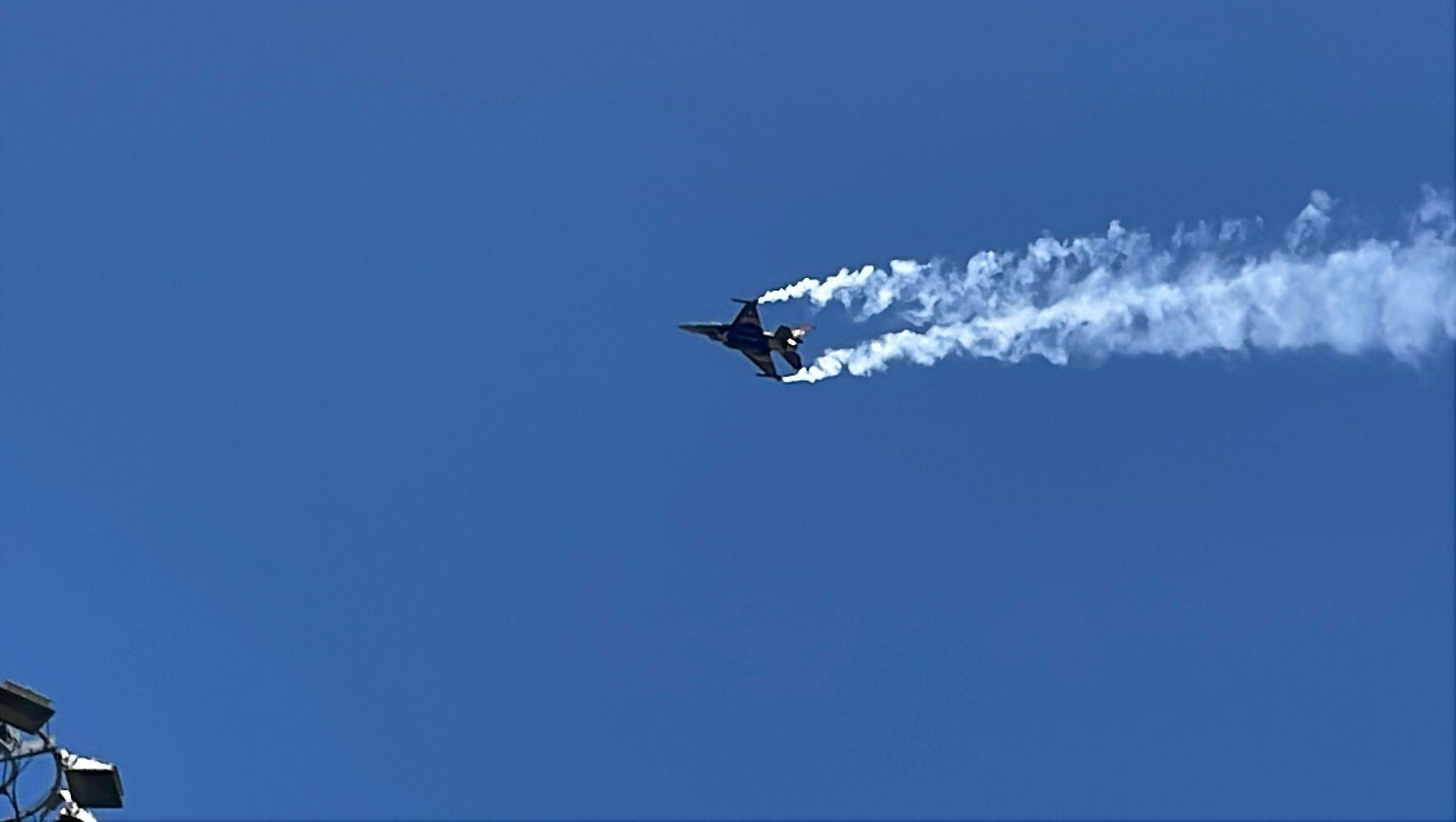 Serhat YILMAZ/ ADAPAZARI (Sakarya), (DHA)- ADAPAZARI’nın düşman işgalinden kurtuluşunun 104’üncü yıldönümünde Türk Hava Kuvvetleri’nin akrobasi timi SoloTürk, gösteri uçuşu yaptı. F‑16C Block 30 savaş jeti ile gerçekleşen gösteri, bölge halkı tarafından büyük bir heyecanla izlendi.