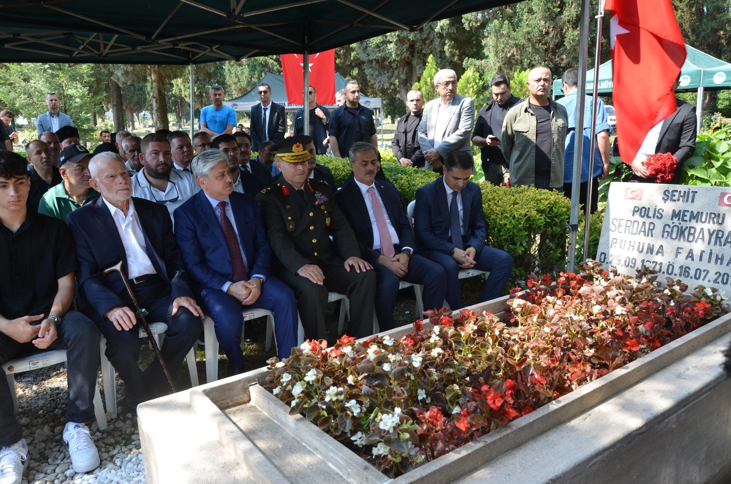 Ahmet ERDEM/ARİFİYE (Sakarya), (DHA)- FETÖ’nün 15 Temmuz darbe girişimi sırasında İstanbul 66. Mekanize Piyade Tugay Komutanlığı'nda şehit olan polis memuru Serdar Gökbayrak, Sakarya'nın Arifiye ilçesinde mezarı başında anıldı.