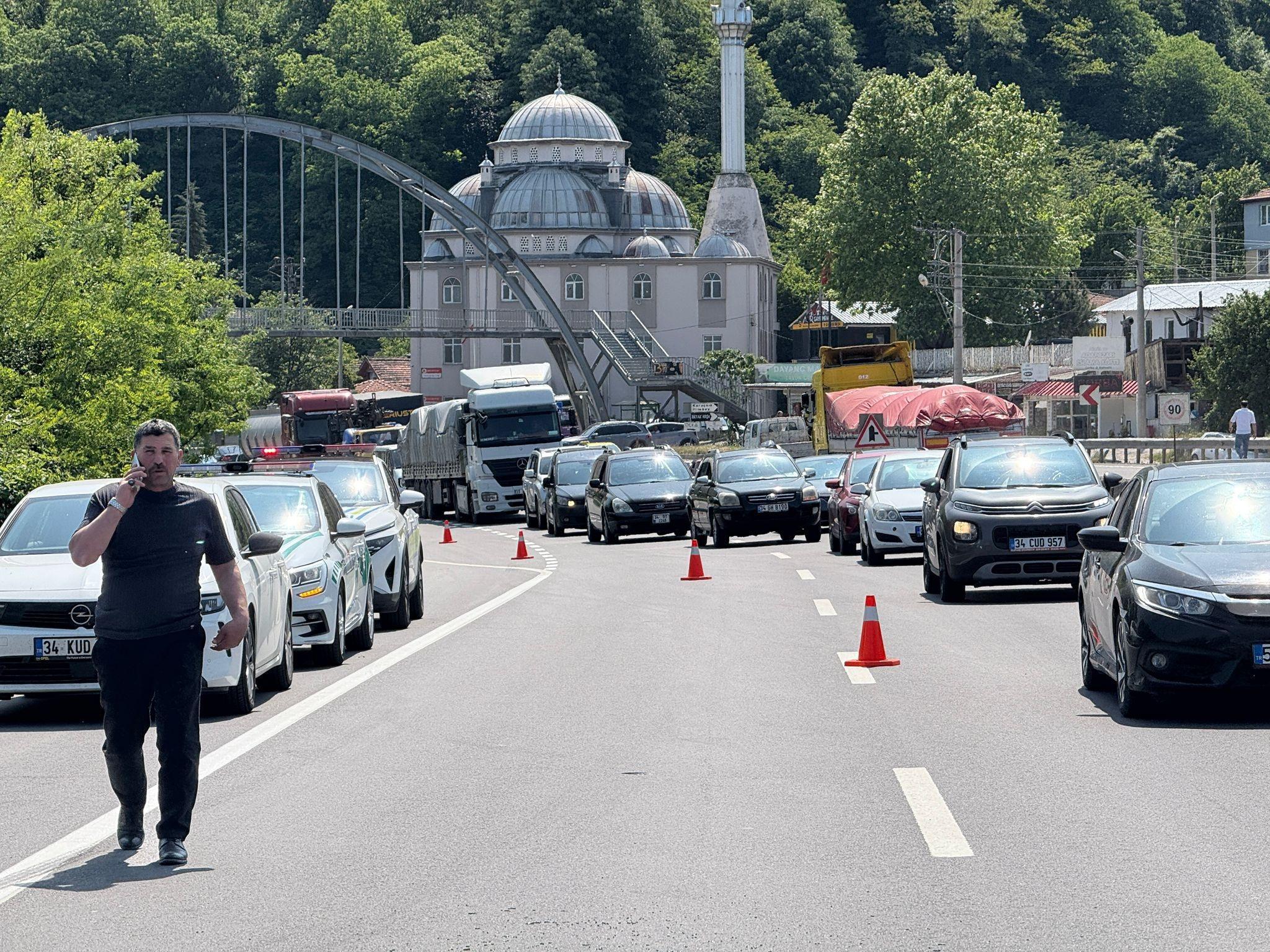 Sakarya yönünde uzun araç kuyrukları oluşan yolda ulaşım, araçların kaldırılmasının ardından yaklaşık yarım saat sonra yeniden normale döndü.