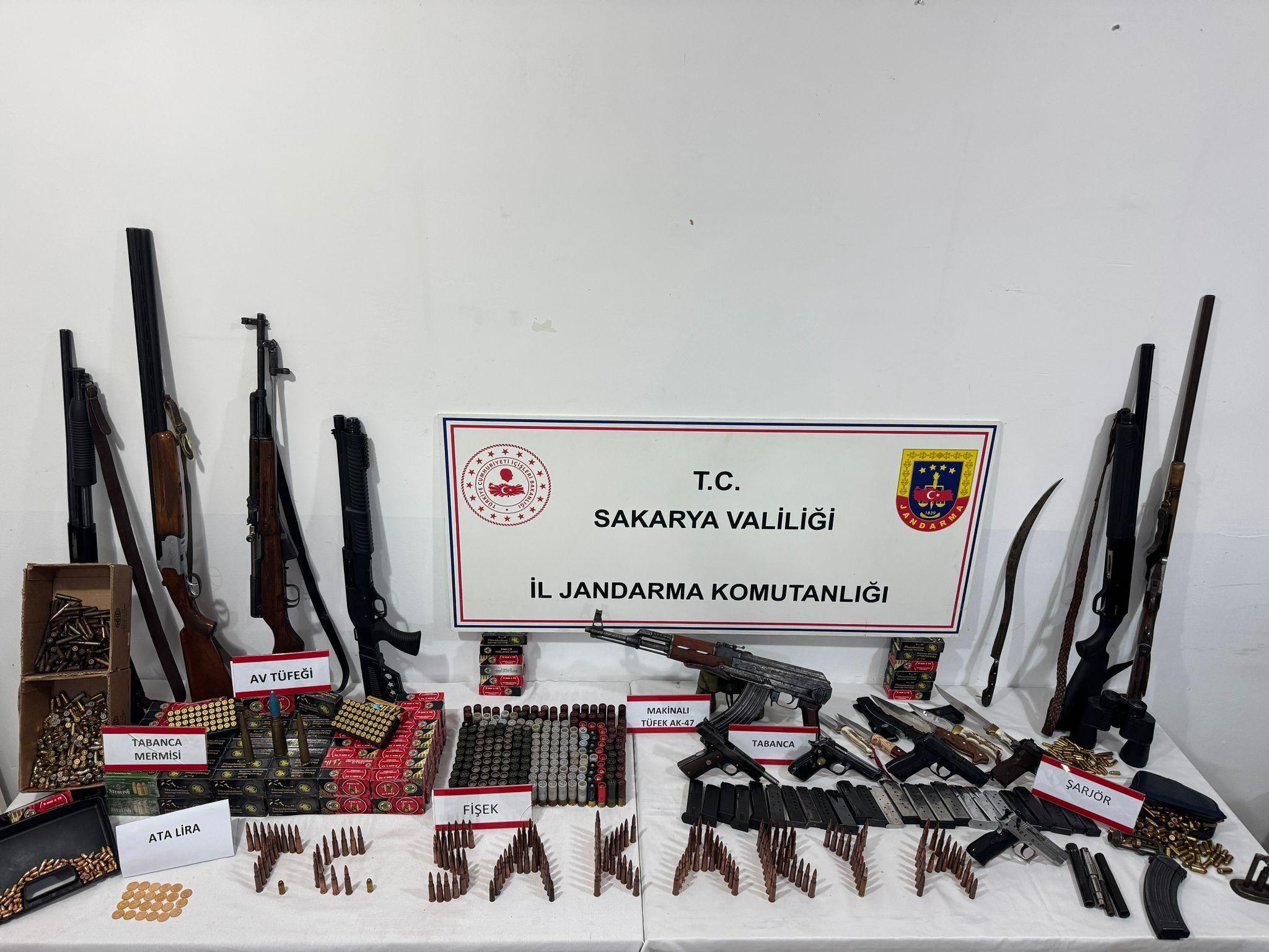 Sakarya İl Jandarma Komutanlığı Kaçakçılık Suçları ile Mücadele ekipleri, Cumhuriyet Başsavcılığı koordinesinde yürütülen soruşturma kapsamında Geyve’de Y.G.’nin ev ve evinin eklentilerinde arama yaptı. Yapılan aramada 1 adet kalaşnikof uzun namlulu silah, 1 adet yivli keskin nişancı tüfeği, 2 adet kalaşnikof şarjörü, 5 adet ruhsatsız tabanca, 25 adet tabanca şarjörü, 6 bin 251 adet 9 milimetre tabanca fişeği, 675 adet 45 milimetre tabanca fişeği, 58 adet 7.65 milimetre tabanca fişeği, 332 adet 7.62 milimetre fişek, 5 adet ruhsatsız av tüfeği, 299 adet av tüfeği fişeği, 3 adet 5.56 milimetre fişek, 10 adet kama ve kesici-delici alet, 23 adet ata lira ile muhtelif sayıda silah yedek parça ve tamir kitleri ele geçirildi.
