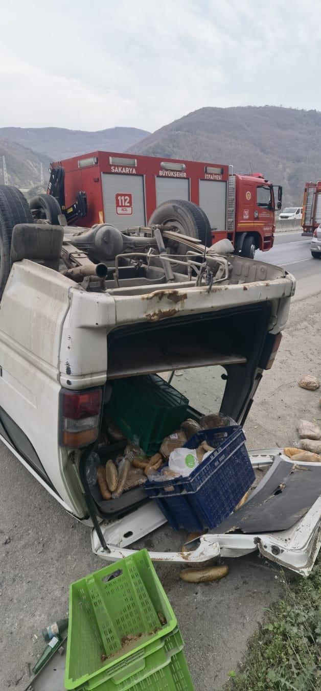 Kaza, akşam saatlerinde Kızılkaya mevkisinde meydana geldi. Geyve istikametine giden ve sürücüsünün ismi öğrenilemeyen 54 AJT 844 plakalı minibüs, kontrolden çıkarak takla attı. Metrelerce sürüklenen minibüste bulunan 2 kişi yaralandı. Haber verilmesi üzerine olay yerine sağlık, itfaiye ve jandarma ile polis ekipleri sevk edildi. Yaralılar sağlık ekiplerince ilk müdahalenin ardından hastaneye kaldırdı.