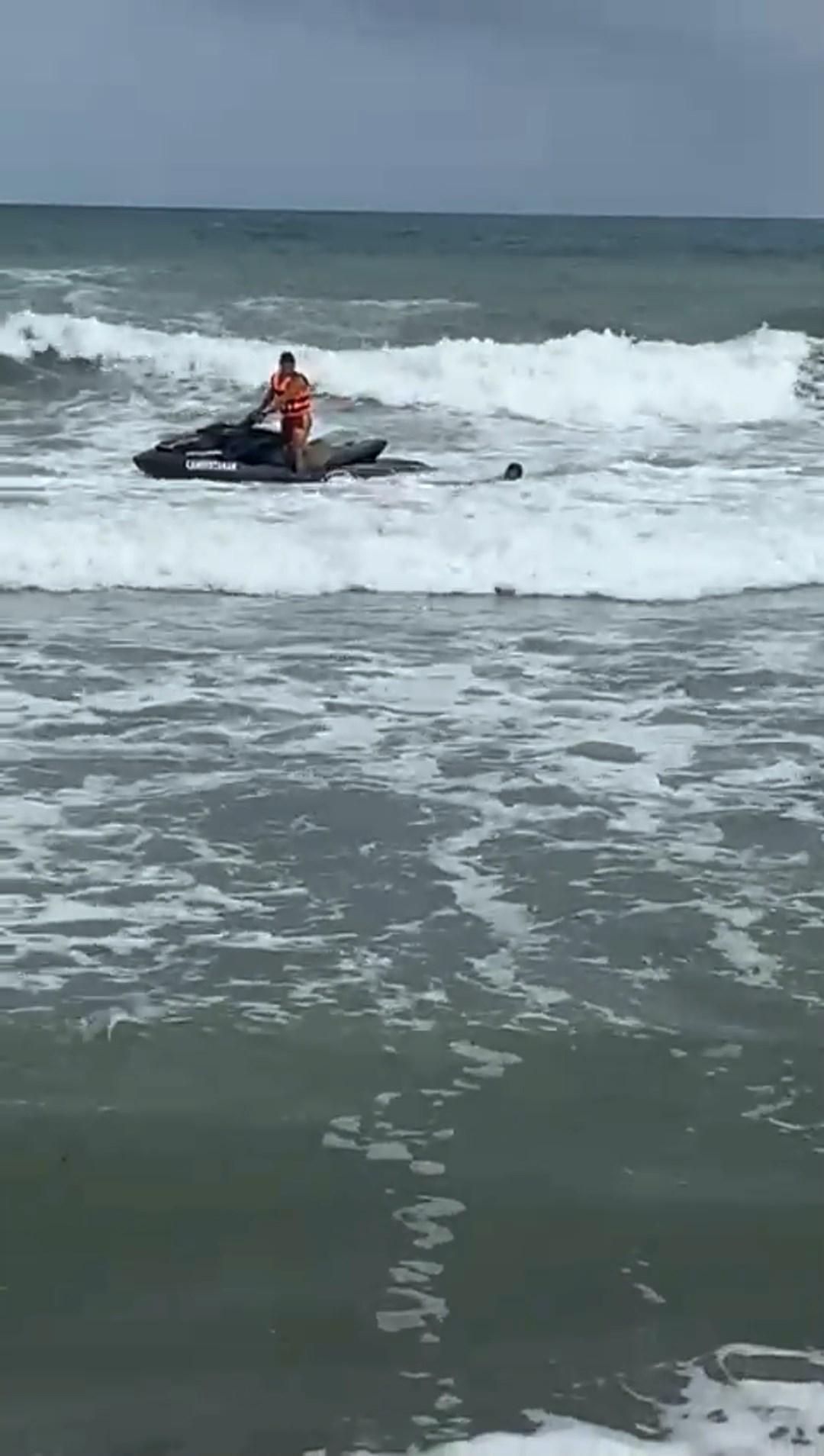 Levent KIZILASLAN/KARASU (Sakarya), (DHA)- SAKARYA'nın Karasu ilçesinde girmenin yasak olduğu dalgalı denizde boğulma tehlikesi geçiren O.K. (37), cankurtaranlar tarafından kurtarıldı. 7 ayrı suçtan 26 yıl 2 ay kesinleşmiş hapis cezası olduğu ve arandığı tespit edine O.K., gözaltına alındı.
