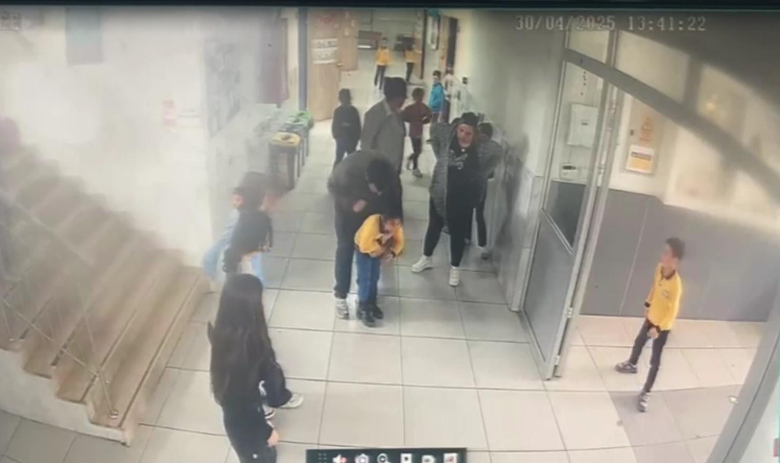 Öte yandan, müdür yardımcısının öğrenciyi Heimlich manevrasıyla kurtardığı anlar ise okulun güvenlik kamerasına yansıdı. (DHA)
