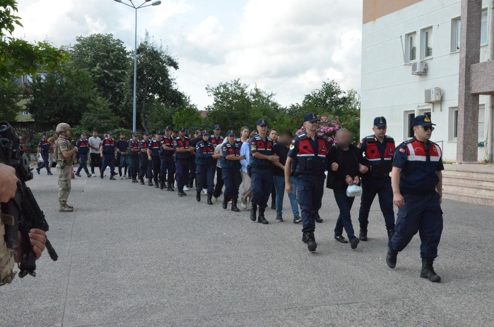 Karasu İlçe Jandarma Komutanlığı’nda işlemleri tamamlanan şüpheliler, dün adliyeye sevk edildi. Mahkemeye çıkarılan şüphelilerden firma sahibi Murat Y. ile R.Y., Y.D., N.Y., M.K. ve Ş.D. tutuklandı, S.D., B.Ü., B.G., N.B., M.D., Ö.Y. ve M.D. adli kontrol şartı ile serbest bırakıldı. (DHA)