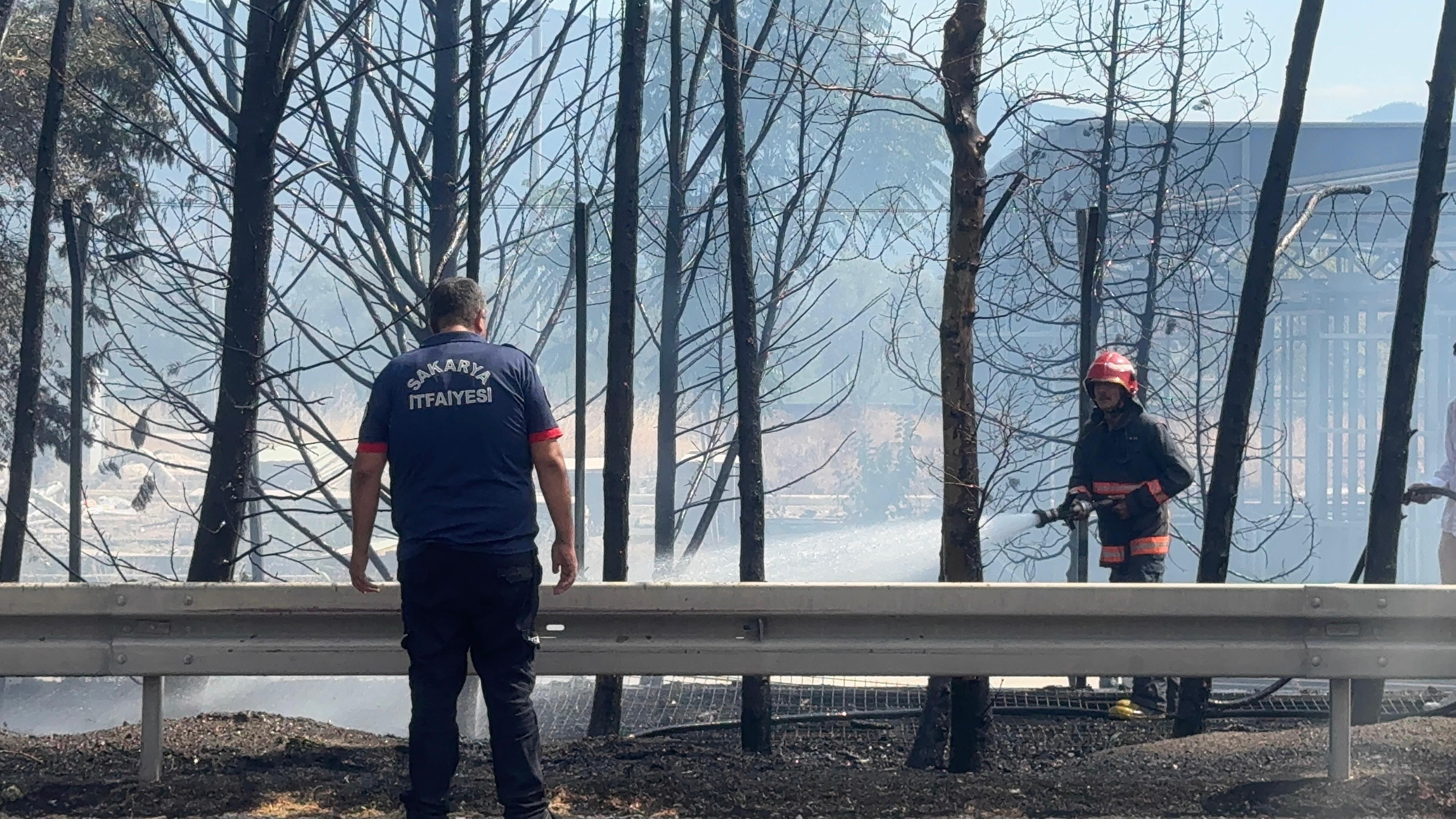 Levent TÜYSÜZ/PAMUKOVA (Sakarya), (DHA)- SAKARYA’nın Pamukova ilçesinde geri dönüşüm tesisinin yanındaki çam ağaçlarının bulunduğu alanda çıkan yangın, kontrol altına alındı.