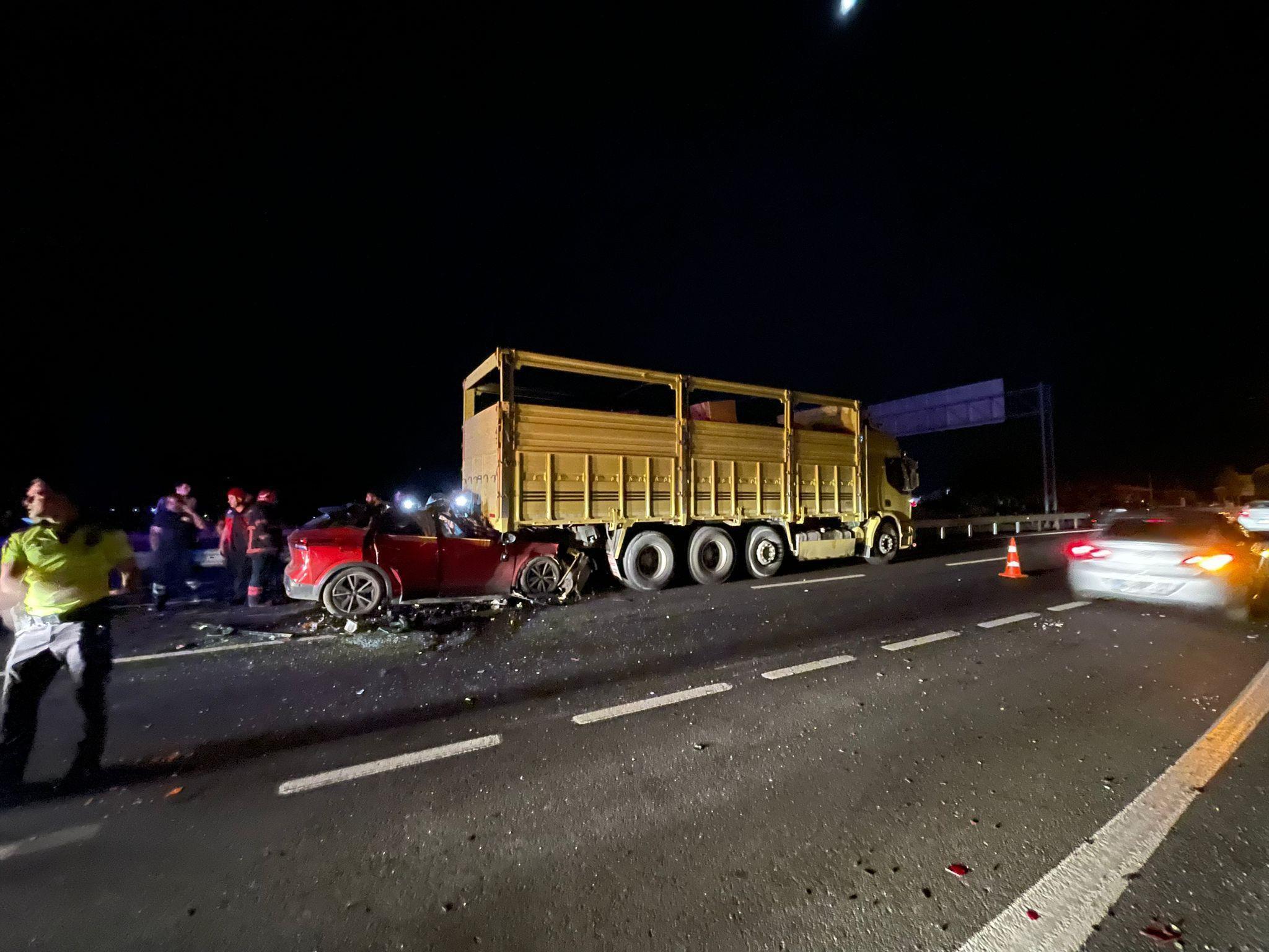 Levent TÜYSÜZ/PAMUKOVA (Sakarya), (DHA)- SAKARYA'nın Pamukova ilçesinde kamyona arkadan çarpıp altına giren otomobilin sürücüsü Bahadır Yavuz (38), hayatını kaybetti.