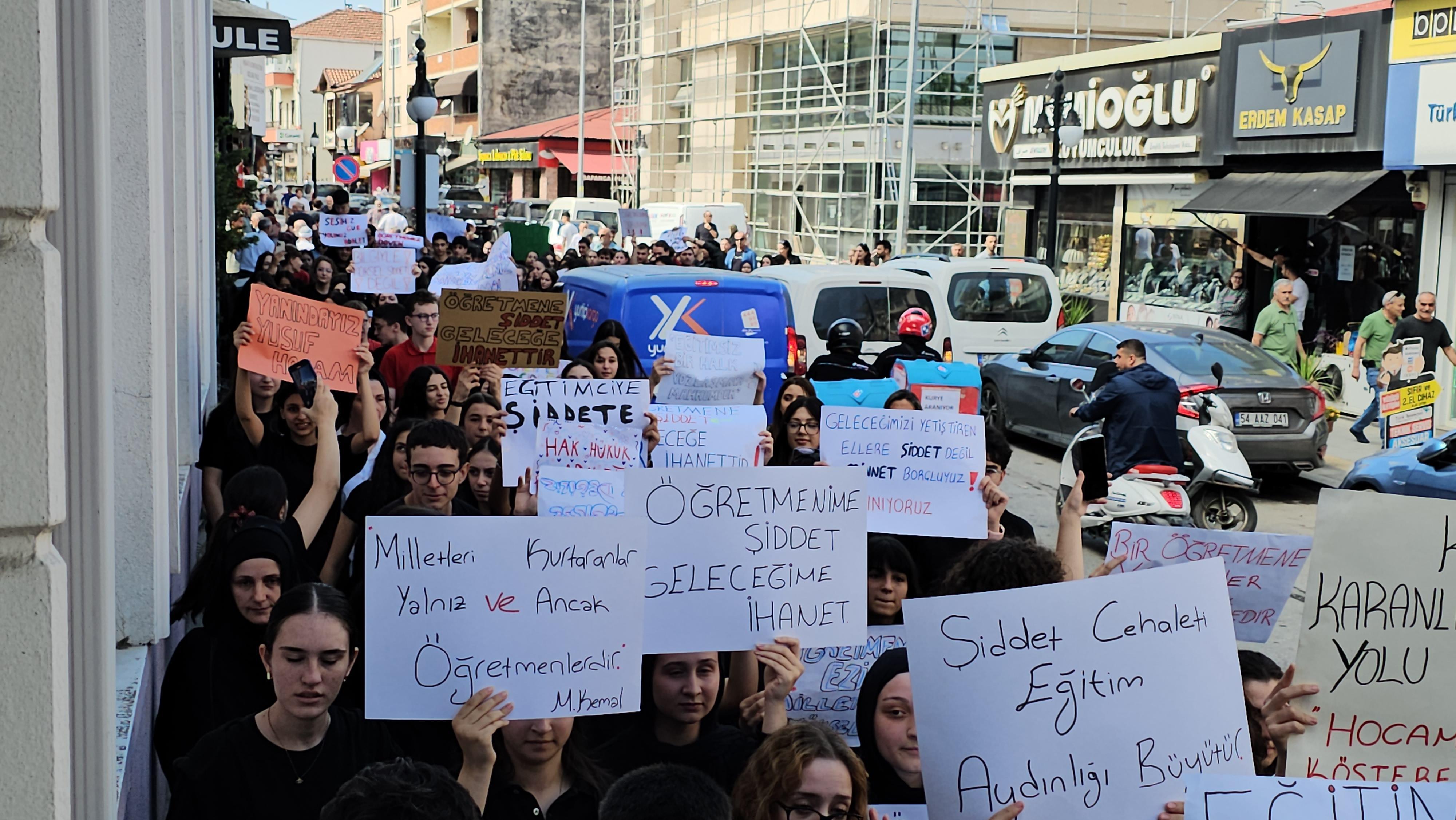 Öğretmene yapılan saldırı öğretmenler, öğrenciler ve sendika temsilcileri tarafından protesto edildi. Eyleme katılanlar ellerinde pankartlarla Sapanca Şehit Pilot Albay Güneri Ekici Parkı’na yürüdü. Grup adına basın açıklaması yapan Sapanca Mesleki ve Teknik Anadolu Lisesi müdür yardımcısı Barış Çetin, eğitim camiasını üzen şiddet olaylarına bir yenisinin daha eklendiğini belirterek, “Okullarımızda öğretmene şiddet, mobbing, taciz, itibarsızlaştırma vakaları ciddi önlemlerin, yasal düzenlemelerin ve esaslı politikaların hayata geçirilememesi nedeniyle maalesef had safhaya ulaşmıştır. Çoğu okulumuzda güvenlik görevlisinin bulunmaması, güvenliğin sadece nöbetçi öğretmenler ve öğrenciler yoluyla sağlanmaya çalışılması, şiddet olaylarına zemin hazırlamaktadır. Oysa her okulumuza güvenlik görevlisi alımı yapılması hayati bir zorunluluktur. Öte yandan eğitimde şiddetin önlenmesi, etkili ve caydırıcı tedbirler geliştirilmesi, eğitim çalışanlarının güvenli bir ortamda çalışmasının yasal koruma altına alınması gerekmektedir. Eğitim çalışanlarımıza yönelik şiddet aslında geleceğimize sıkılan kurşundur. Bu nedenle geleceğimizin karartılmasına müsaade etmeyeceğiz, şiddete müsamaha göstermeyeceğiz. Bu ülkenin eğitimcileri olarak şiddetle sonuna kadar mücadele edeceğiz. Vandallara teslim olamayacak, bu vahşet olaylarının önüne geçilmesi için gerekli tedbirler alınana kadar konuyu gündemde tutmayı ve farkındalık oluşturmayı sürdüreceğiz” dedi. (DHA)